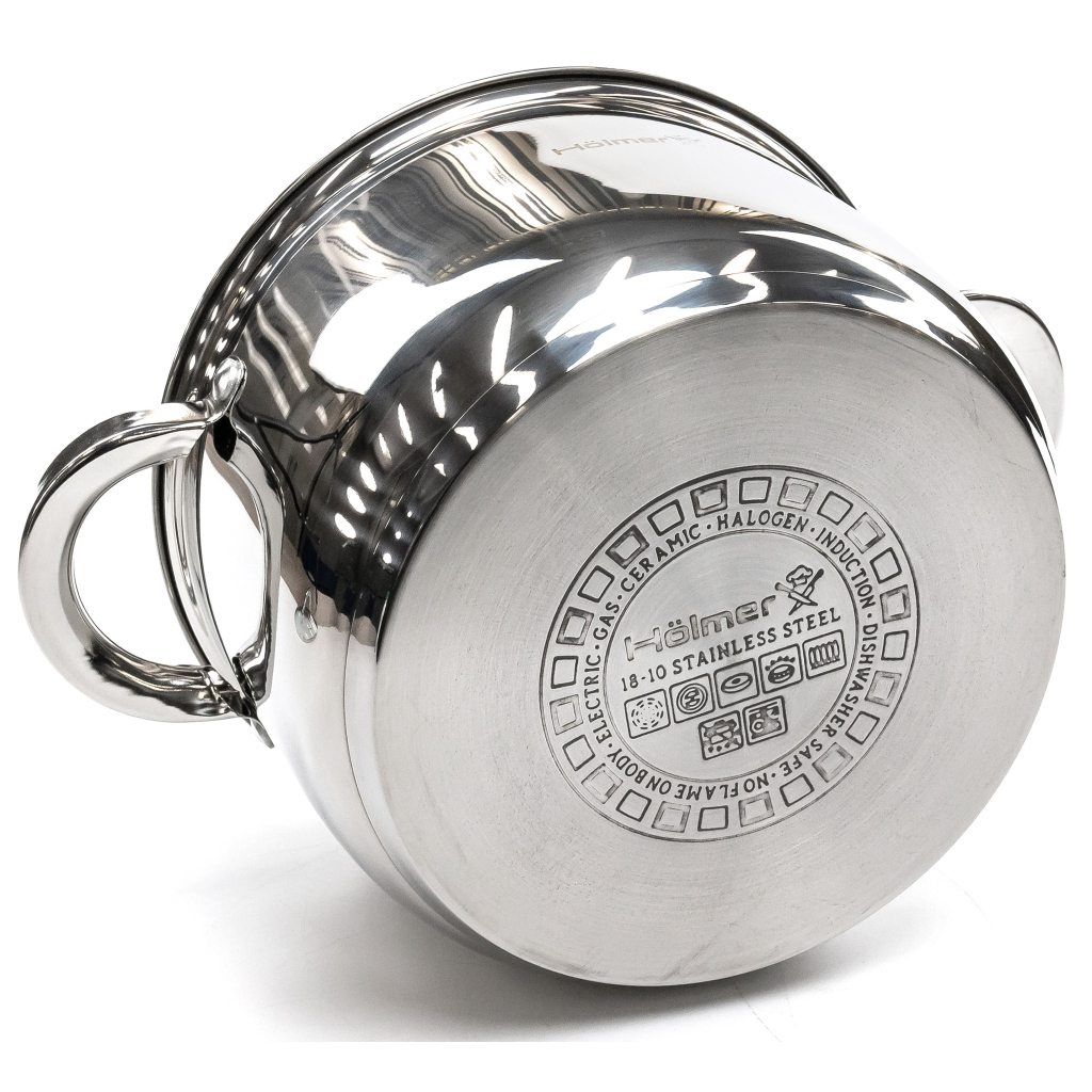 Hölmer — це кастрюля з нержавіючої сталі преміум-класу, створена для тих, хто цінує якість та комфорт у кожній деталі. Ідеальний вибір для приготування супів, гарнірів, овочів чи пасти. Переваги: Високоякісна нержавіюча сталь 18/10 забезпечує довгий термін служби та стійкість до подряпин і корозії. Тришарове дно товщиною 4 мм гарантує рівномірне нагрівання без перегрівів. Ергономічні металеві ручки забезпечують зручне та безпечне використання. Сумісна з усіма типами плит, включаючи індукційні. Hölmer поєднує елегантний дизайн і надійну функціональність — саме те, що потрібно для сучасної кухні.