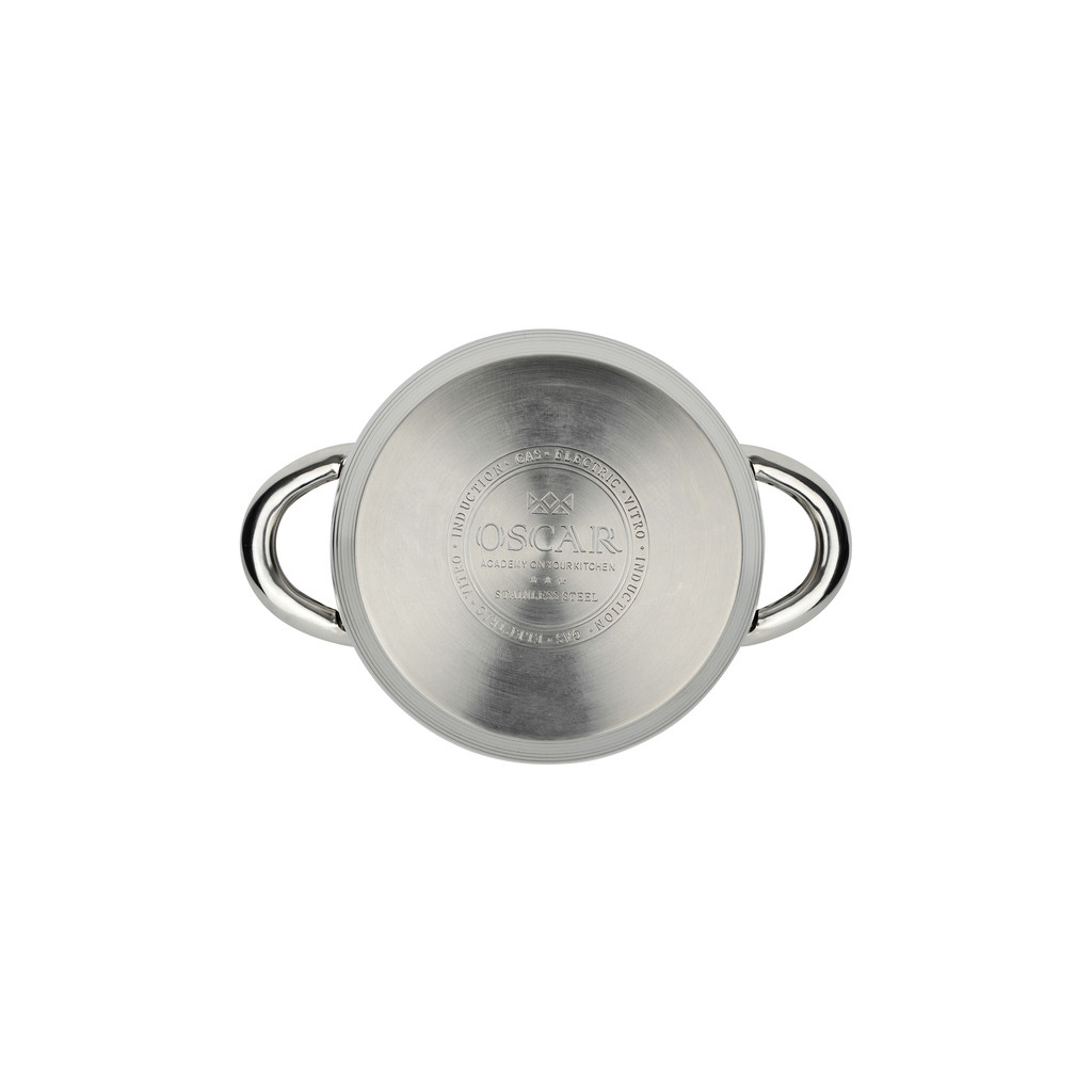 Каструля має стильний вигляд завдяки кольору нержавіючої сталі, що робить її не лише практичною, але й естетично привабливою. Виробник – Oscar, країна виробництва – Китай.