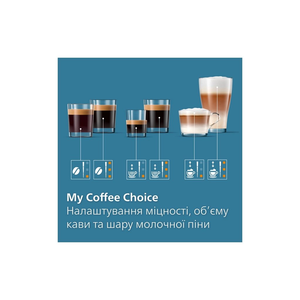Сучасний сенсорний дисплей із кольоровими піктограмами дозволяє легко вибирати улюблені напої. Приготуйте каву, яку ви любите, за допомогою меню My Coffee Choice: виберіть бажану міцність, об’єм напою та шар молочної пінки на свій смак.