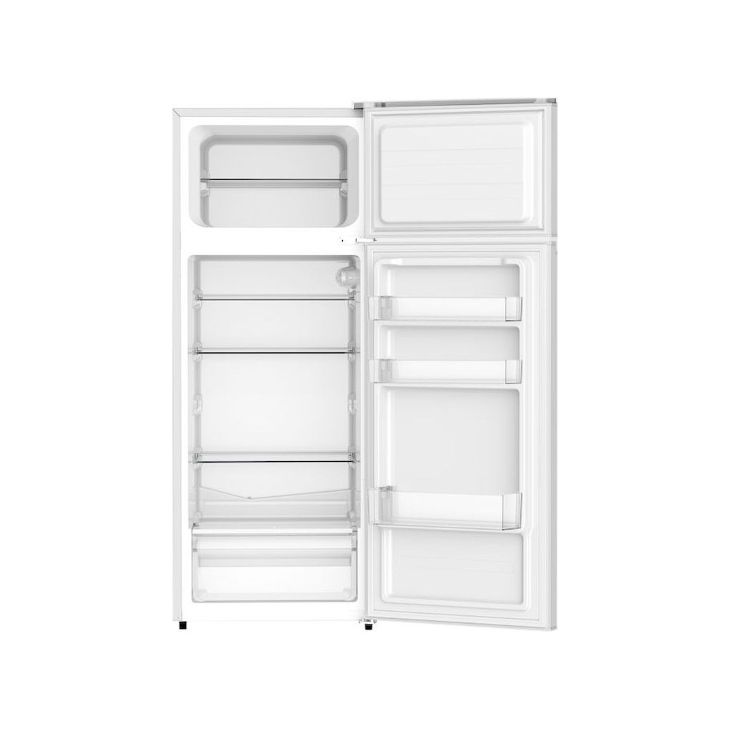 - Двокамерний дизайн з корисним об’ємом холодильної камери у 169 літрів гарантує достатньо простору для розміщення продуктів.