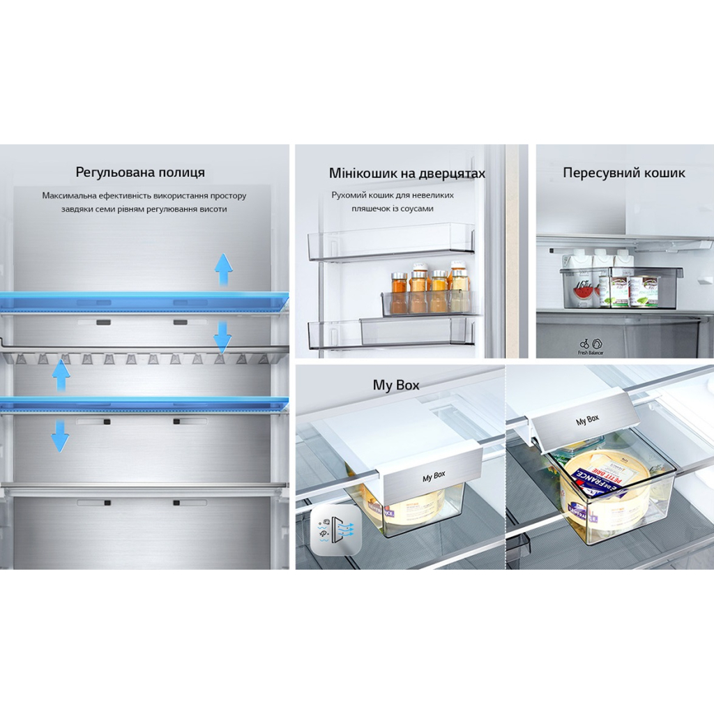 - Зони Fresh Balancer і Fresh Converter дозволяють точно регулювати вологість і температуру для різних продуктів, що допомагає зберегти їх свіжість.