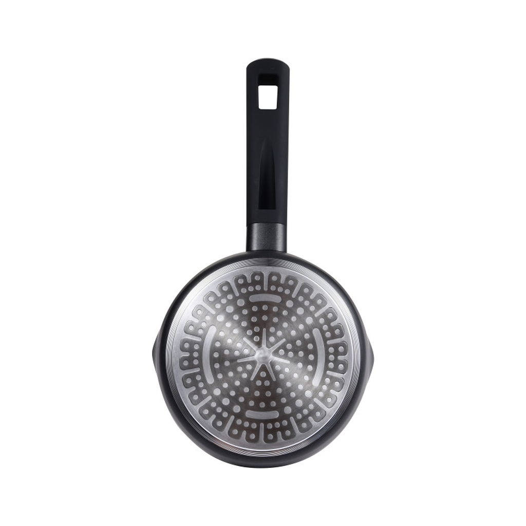 - Ківш сумісний з усіма типами плит, включаючи індукційні, що робить його універсальним помічником на кухні.
