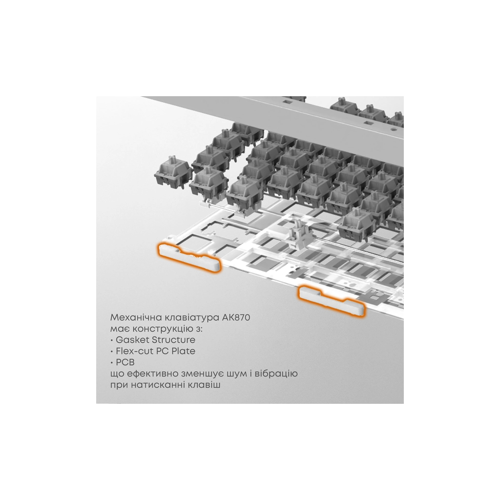 Клавіатура Ajazz AK870 PLUS Murad Switch RGB Wireless/Bluetooth/USB – це ігрова механічна клавіатура, що поєднує в собі стильний дизайн та функціональність. Вона ідеально підходить для використання з телевізорами та комп'ютерами, забезпечуючи зручність і комфорт під час гри або роботи.