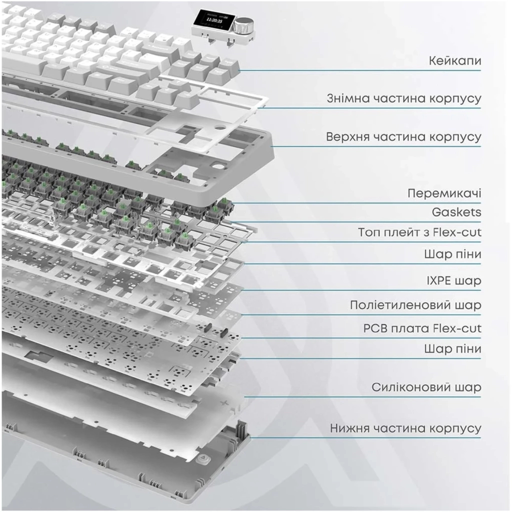 Клавіатура Ajazz AK870 PLUS має ряд особливостей, які роблять її незамінною для програмістів та геймерів. Програмовані клавіші дозволяють налаштувати управління під ваші потреби, а функція Anti-Ghosting забезпечує точність натискань під час інтенсивних ігор. Додатково, клавіатура оснащена звуковбирною піною для зменшення шуму, а регулювання гучності дозволяє легко контролювати звук. Завдяки компактному формату та стильному білому кольору, ця клавіатура стане чудовим доповненням до вашого робочого місця або ігрової станції.