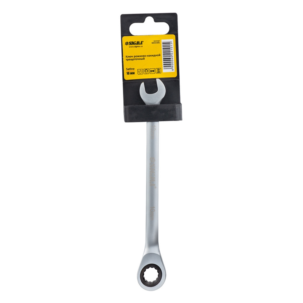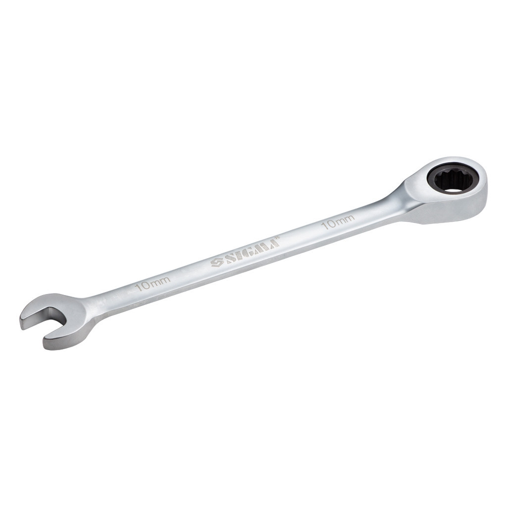 Ключ Sigma ріжково-накидний з тріскачкою 10мм CrV satine (6022101) – це незамінний інструмент для кожного майстра. Тип ключа – гайковий, що дозволяє з легкістю працювати з різними гайками та болтами. Двосторонній дизайн забезпечує зручність використання, а комбінований вид дозволяє виконувати різноманітні завдання. Храповий механізм значно спрощує процес закручування та відкручування, що робить цей ключ ідеальним для роботи в обмежених просторах.