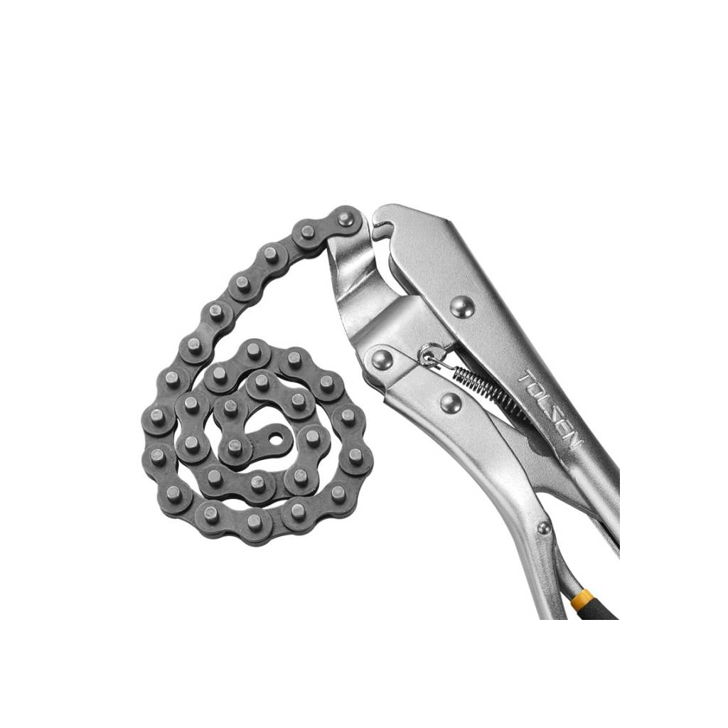 Кліщі затискні ланцюгові Tolsen 460 мм – це професійний інструмент, призначений для надійної фіксації деталей різної форми та діаметра. Завдяки міцному ланцюгу, інструмент легко охоплює круглі, овальні чи нерегулярні заготовки, що робить його незамінним у роботі з трубами, патрубками та іншими циліндричними елементами.