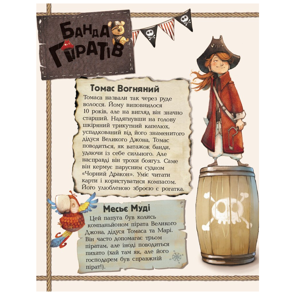 Запрошуємо вас у захоплюючу подорож разом з книгою «Банда Піратів. На абордаж» авторства Жюльєтт Парашині-Дені. Ця книга, видана видавництвом Ранок, стане чудовим супутником для дітей віком від 6 до 12 років. На сторінках книги ви зустрінете сміливих піратів: Томаса Вогняного, Марі Безстрашну та Віллі-Розумника, які запрошують вас на неймовірні пригоди на їхньому галеоні «Чорний Дракон».