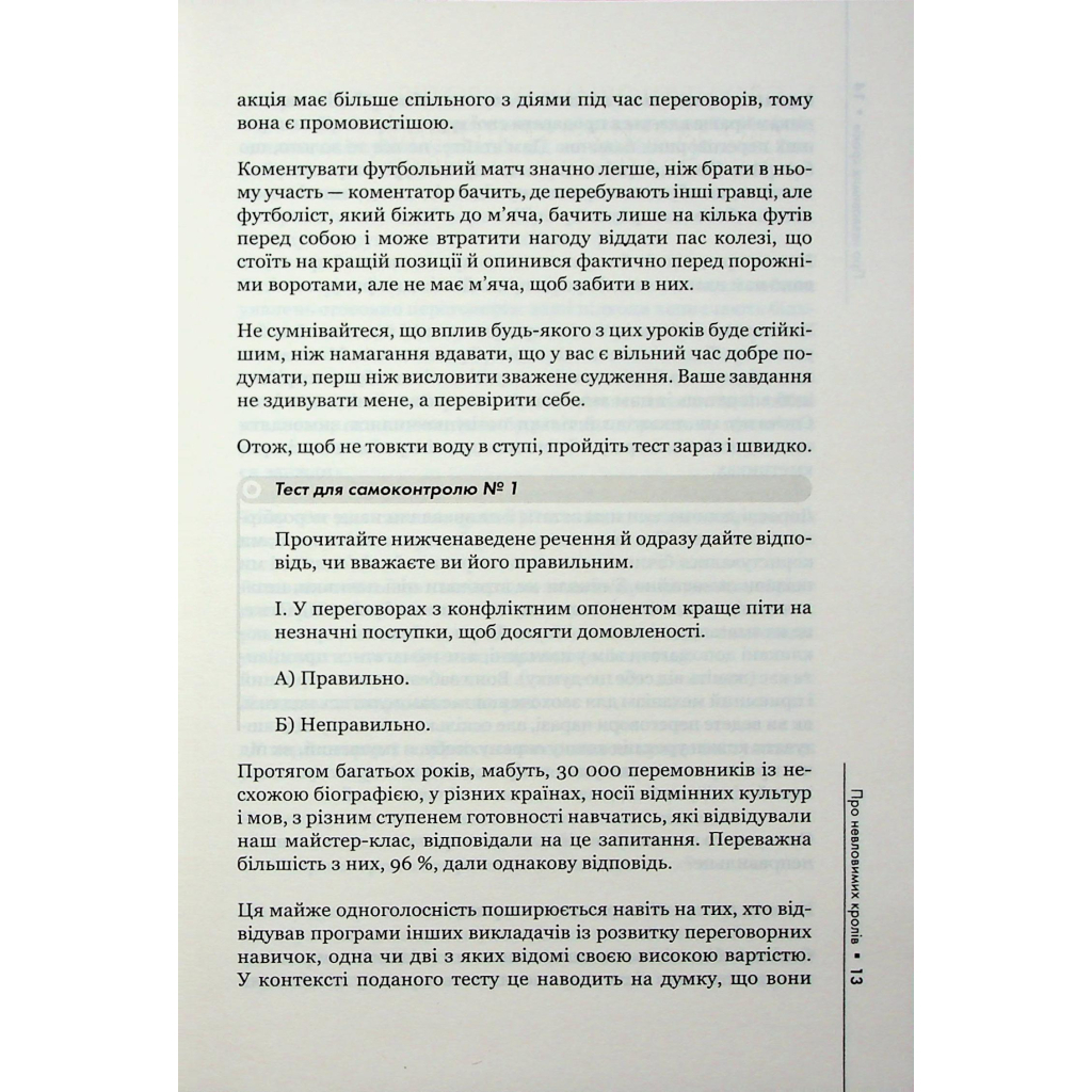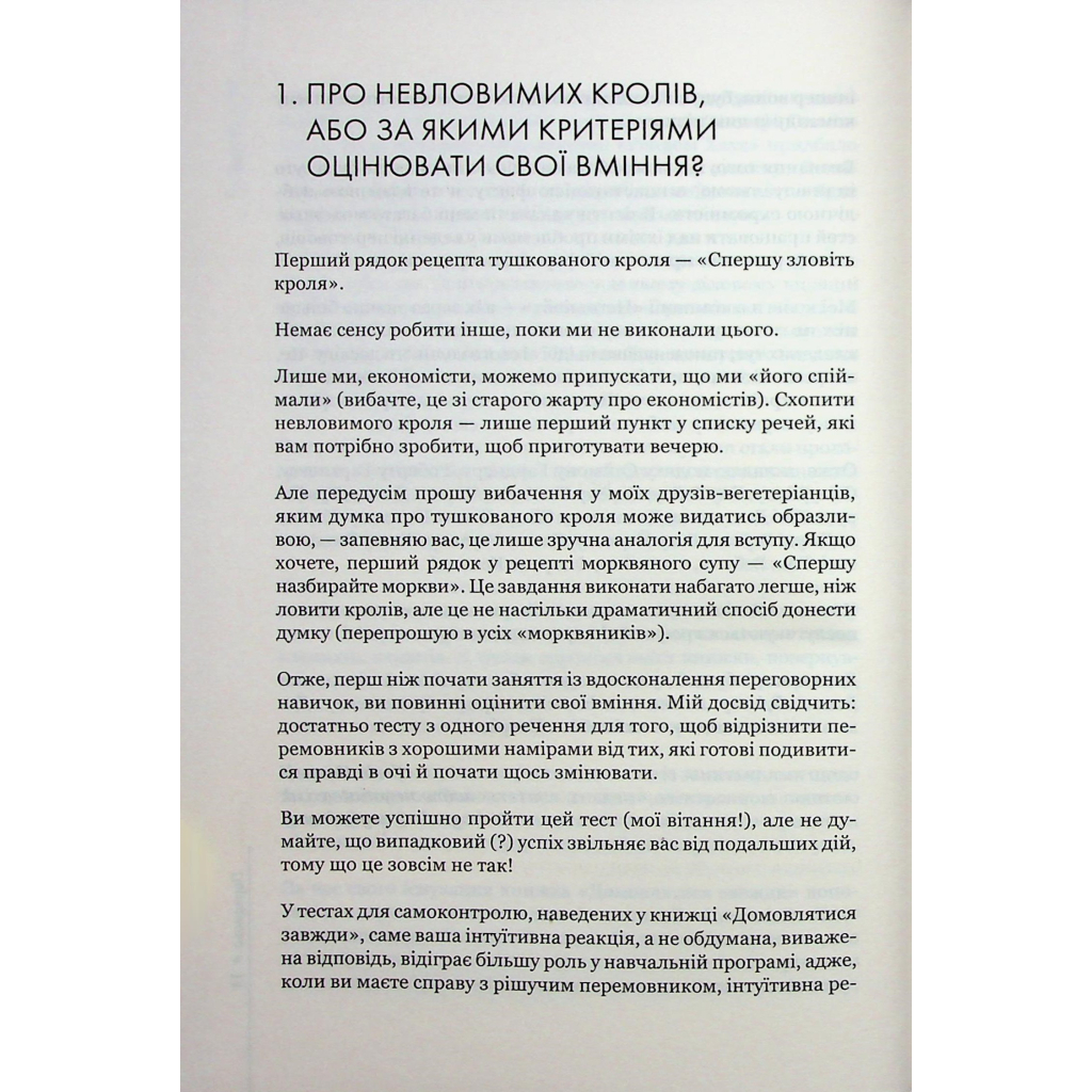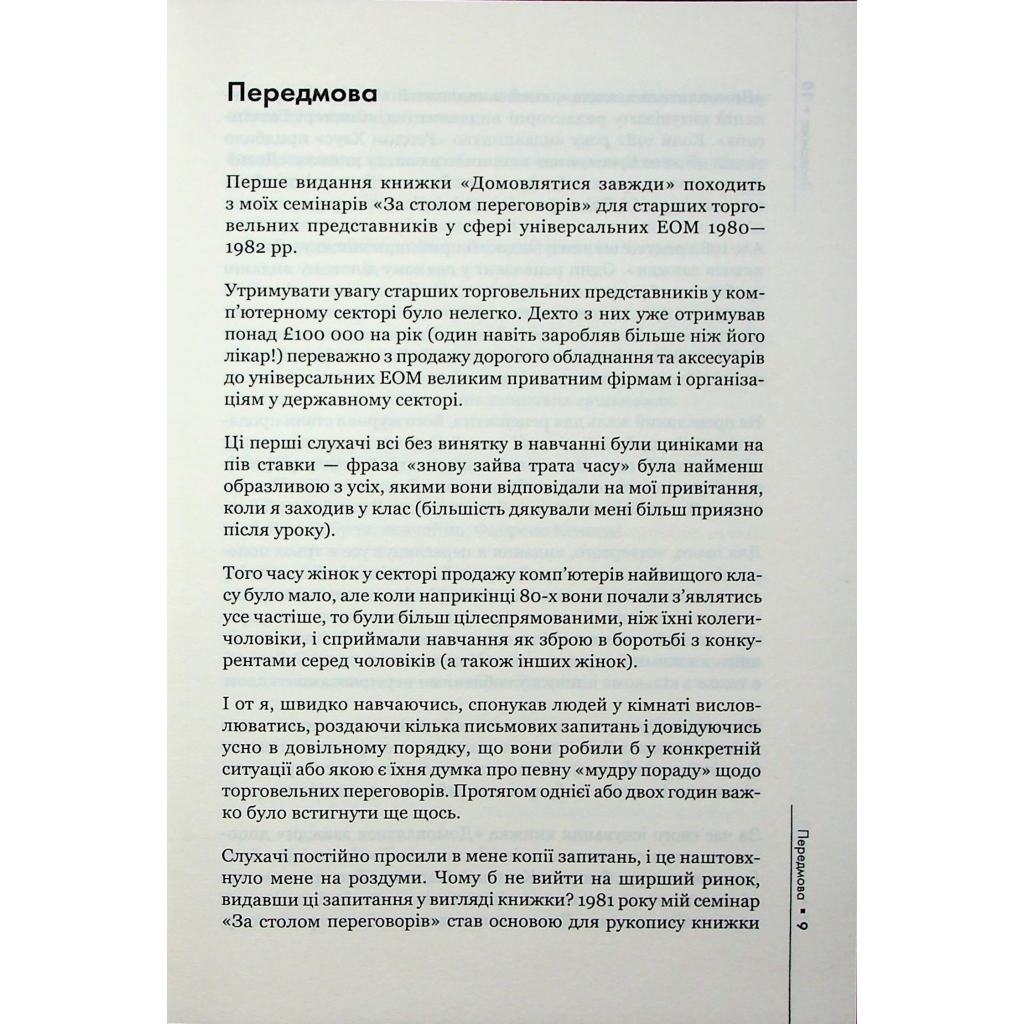 Згадайте, скільки разів ви втрачали жадані контракти лише через те, що програвали на перемовинах. А як часто власні діти ставлять вас у безвихідь? Або ж проаналізуйте останню розмову з друзями. Щодня ми проводимо десятки перемовин, навіть не помічаючи цього. Цей посібник з успіху допоможе вам: Досягти максимуму в будь-яких формах спілкування Розібратися в стратегічних підходах до перемовин Опанувати безпрограшні тактичні прийоми Дізнатися про типи співрозмовників, розпізнати їх та перемогти Отримати бажане й назавжди змінити життя! Книжка стане в пригоді під час перемовин із клієнтами, партнерами, підлеглими, постачальниками, керівниками й навіть