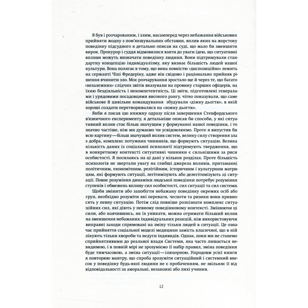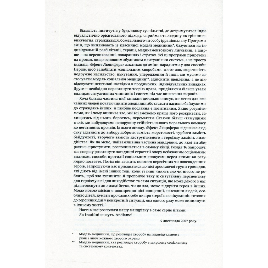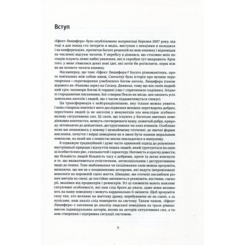 Книга Ефект Люцифера. Чому хороші люди чинять зло від легендарного американського психолога Філіпа Зімбардо є важливим дослідженням, яке повертає нас до знаменитого Стенфордського в’язничного експерименту, проведеного влітку 1971 року. У цій книзі ви знайдете детальний опис перебігу експерименту, а також розлогі уривки зі щоденника психолога та учасників. Зімбардо проводить паралелі з іншими подібними експериментами та реальними випадками насильства у державних інституціях, що робить цю книгу надзвичайно актуальною.