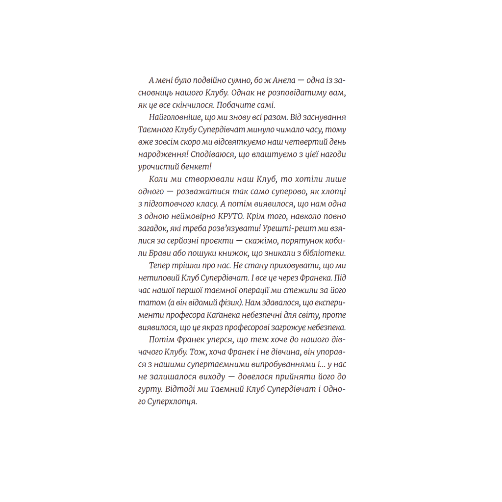 Читачі зможуть насолодитися неймовірними пригодами Емі та її друзів, що робить цю книгу не лише цікавою, але й корисною для розвитку соціальних навичок. Завдяки захоплюючому сюжету та яскравим персонажам, «Емі і Таємний Клуб Супердівчат» стане улюбленою книгою для дітей, які прагнуть до нових відкриттів та незабутніх моментів. Замовте цю книгу вже сьогодні та подаруйте радість читання вашій дитині!