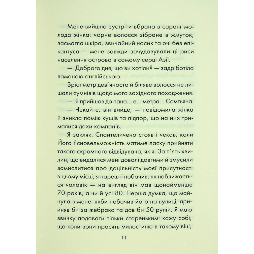 Жуліан почувався цілковито нещасним, хоча мав молодість та здоров’я. Незадоволений життям, молодик палко бажає віднайти щастя. Доля скеровує його до загубленого селища, що розташовано в самому серці балійських лісів. Там, подалі від гамірного світу, мешкає мудрий цілитель душ Самтьян. Йому відома істина, якої так прагне Жуліан. Це знання могло б змінити реальність та мільйони життів, обернути нещасних на щасливців. Але його так легко не отримаєш, не купиш і не забереш силою. Бо справжнє щастя можна лише збагнути… Книга французького письменника Лорана Гунеля стала всесвітнім бестселером і була перекладена більш ніж