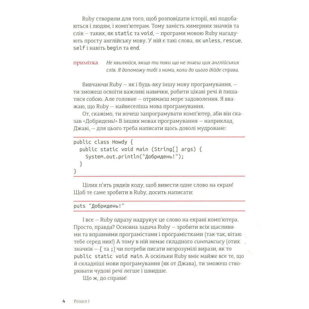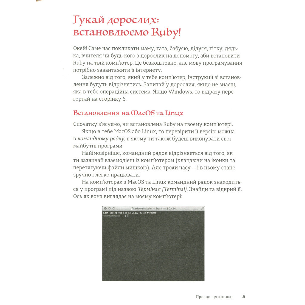 Видавництво Старого Лева представляє книгу «Ruby для дітей. Магічний вступ до програмування» від Еріка Вайнштейна. Ця книга стане чудовим стартом для молодих програмістів, які хочуть вивчити основи програмування на мові Ruby. Вона підходить для дітей віком від 6 до 12 років і допоможе розвинути логічне мислення та креативність.