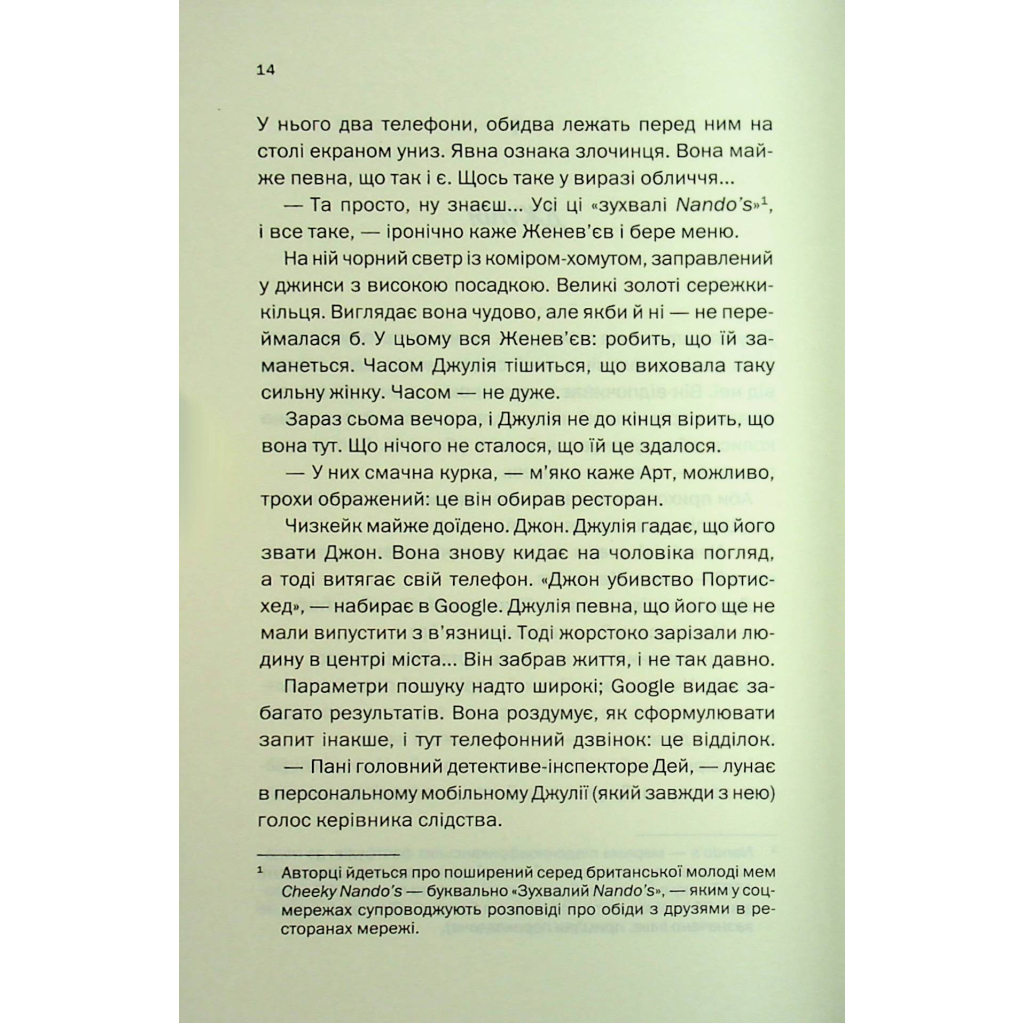 Ця книга стане чудовим вибором для любителів сучасної літератури та тих, хто цінує напружені сюжети з несподіваними поворотами. Не пропустіть можливість зануритися в цю захоплюючу історію!
