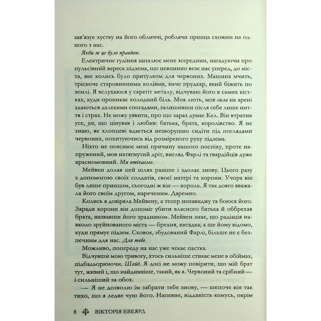 Кров Мер Барров червона — як у простих людей, — але здатність контролювати блискавку перетворила її на зброю, якою намагається маніпулювати двір срібних. Королівська родина називає її фальшивкою, але коли Мер вдається втекти від принца Мейвена, друга, який зрадив її, — відкривається шокуюча таємниця: вона не єдина зі свого роду, хто має силу.