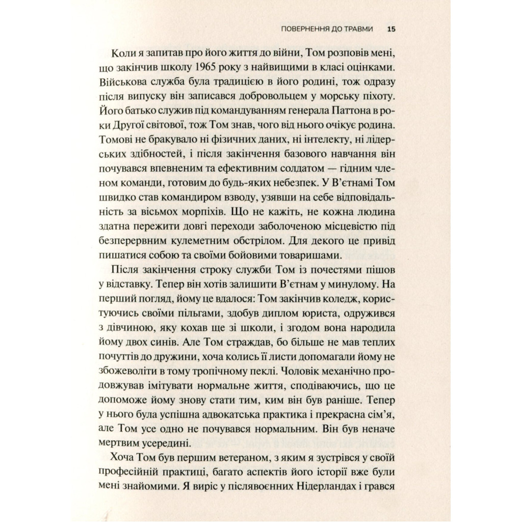 Книга Тіло веде лік. Як лишити психотравми в минулому авторства Бессела ван дер Колка – це важливий ресурс для тих, хто прагне зрозуміти та подолати наслідки психологічних травм. Травматичний досвід, закарбований у тілі, може призводити до повторюваного болю, і ця книга пропонує шляхи звільнення з цієї пастки. Доктор ван дер Колк, спираючись на свої практичні та теоретичні дослідження, висвітлює різноманітні аспекти травми, включаючи: