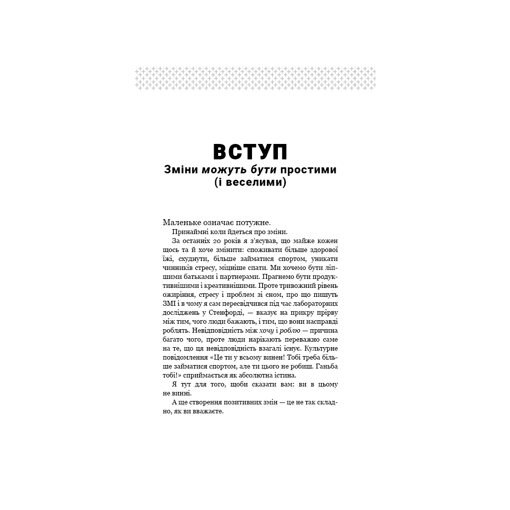 Книга Tiny Habits. Крихітні звички, які змінюють життя від Браяна Джефрі Фоґґа — це унікальний посібник, який допоможе вам зрозуміти, як маленькі зміни можуть призвести до великих результатів. У ній розглядається, чому ми часто не досягаємо своїх цілей, і як можна подолати опір старих звичок. Автор пропонує просту методологію для розвитку корисних звичок, засновану на психології людини.