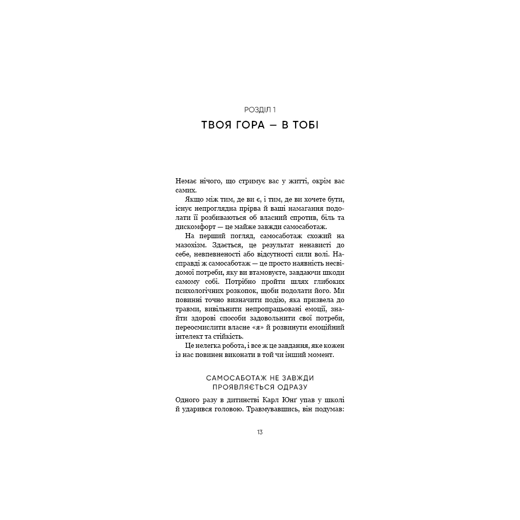 Книга Тією горою є ви. Як перетворити самосаботаж на самовдосконалення від Бріанни Вест – це унікальний посібник з саморозвитку та мотивації, призначений для читачів віком 18+. Ця книга допоможе вам зрозуміти, як подолати внутрішні бар'єри та перетворити самосаботаж на шлях до особистісних трансформацій.