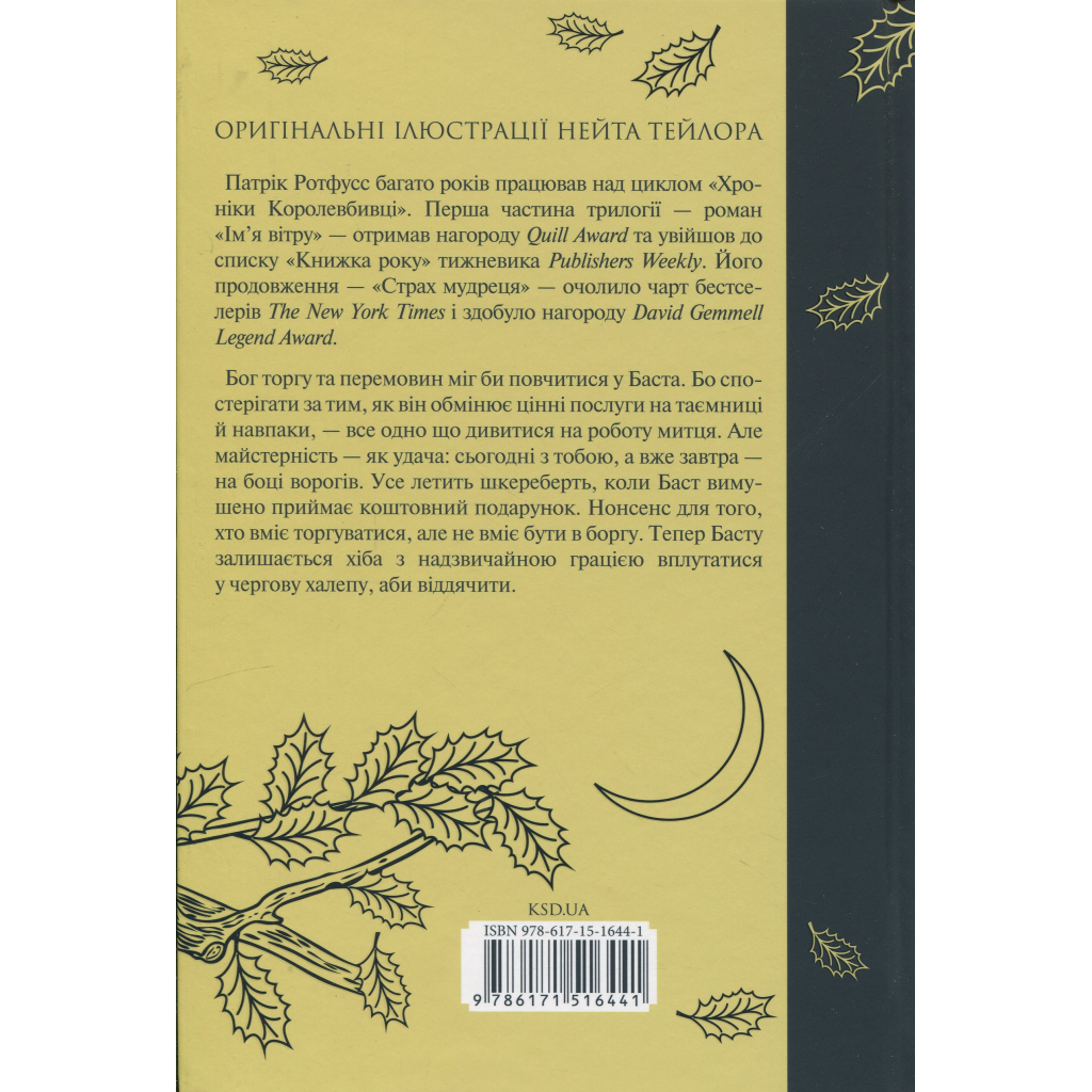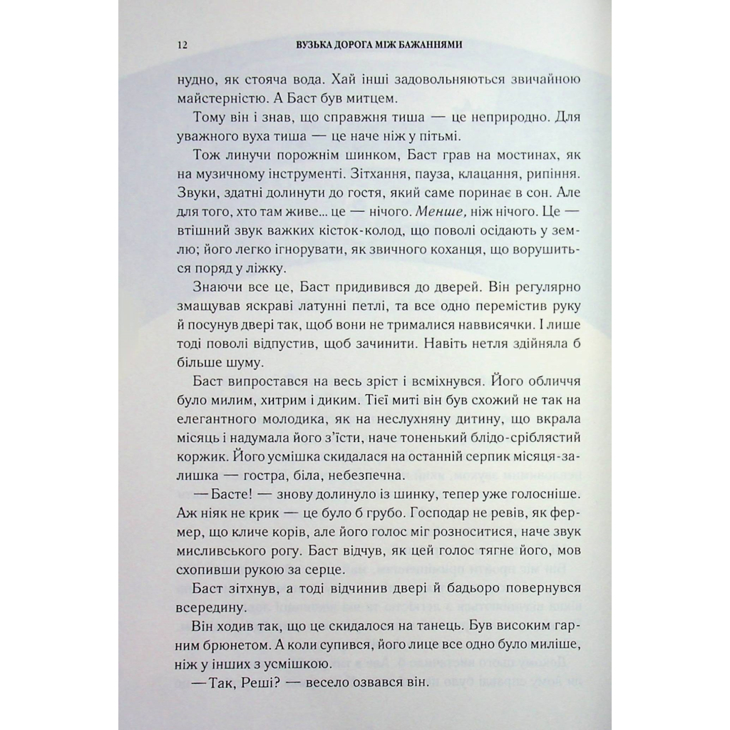 Книга «Вузька дорога між бажаннями» відомого американського письменника Патріка Ротфусса є частиною серії «Хроніки вбивці короля». У цій фентезі-новелі ми знайомимося з Бастом, молодим юнаком, який живе разом зі своїм наставником Квоутом. Баст, з довгим темним волоссям, прагне пригод у маленькому містечку, де він обмінює послуги на секрети. Проте, його життя не таке просте, як здається. Він постійно намагається уникнути боргів і дотримуватися своїх принципів, але іноді обставини змушують його діяти всупереч здоровому глузду.