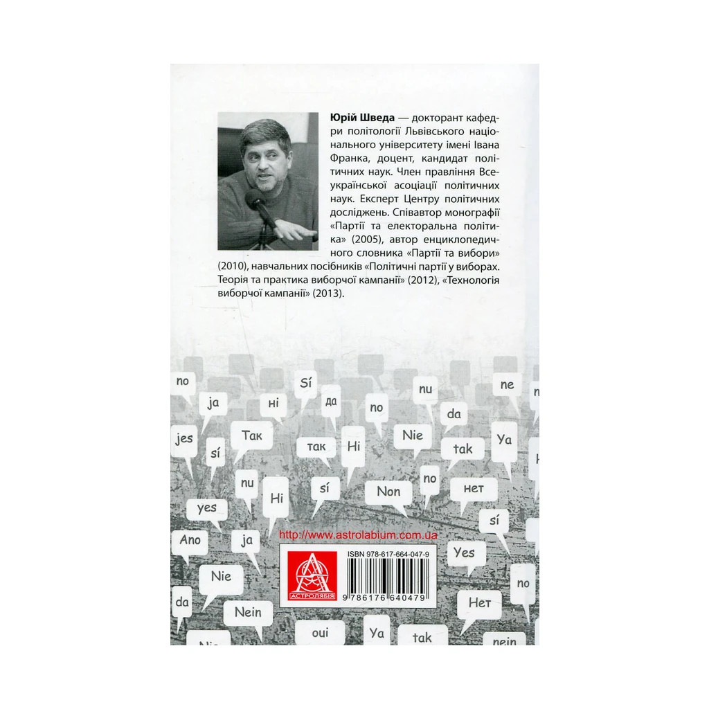 Книга Вибори від А до Я – це настільна книга менеджера виборчої кампанії, написана Юрієм Шведою та видана Астролябією. У ній розглянуто теоретичні та практичні аспекти організації виборчої кампанії. Книга детально аналізує суть, складові, етапи та ресурси виборчої кампанії, а також основи електорального маркетингу, менеджменту, комунікації та поведінки виборців.
