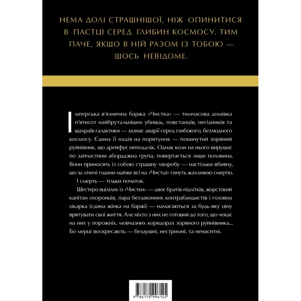 Книга Зоряні Війни. Легенди. Солдати Смерті – Джо Шрайбер від Varvar Publishing (ISBN: 9786170998705) занурює читача у світ космічних пригод та небезпек. Імперська в’язнична баржа «Чистка» стає домом для п’ятисот найжорстокіших злочинців галактики, які опиняються в пастці серед безкрайніх глибин космосу. Після аварії їх єдина надія на порятунок — покинутий зоряний руйнівник. Однак, коли абордажна група вирушає за запчастинами, вони повертаються не всі. Страшна хвороба, що вбиває за лічені години, стає новим ворогом для вцілілих. Шестеро героїв, серед яких два брати-підлітки та жорстокий капітан охорони, намагаються вижити в умовах, коли мертві воскресають. Ця книга — справжня знахідка для любителів фантастики та сучасної літератури, яка не залишить байдужими навіть найвибагливіших читачів.