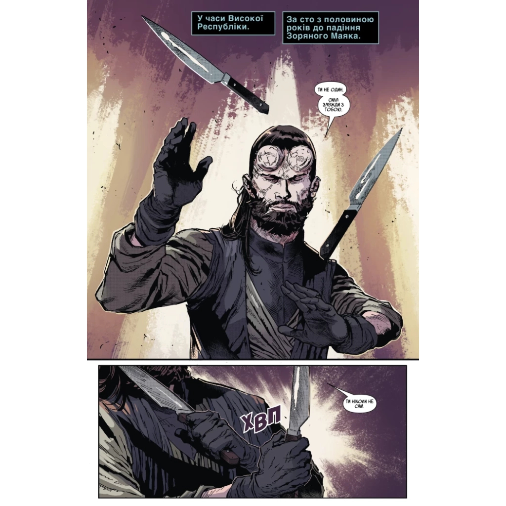 Комікс Зоряні Війни: Меч – Чарльз Соул від Varvar Publishing (ISBN: 9786170994080) запрошує вас у захоплюючу подорож до Глибокої Фронтири. Двоє джедаїв, Портер Енґл та Бараш Сільвейн, стикаються з викликами, які перевірять їхню рішучість та віру. Ця історія про честь, боротьбу та ціну, яку доводиться платити за віру, вражає динамічним сюжетом і кінематографічною напругою.