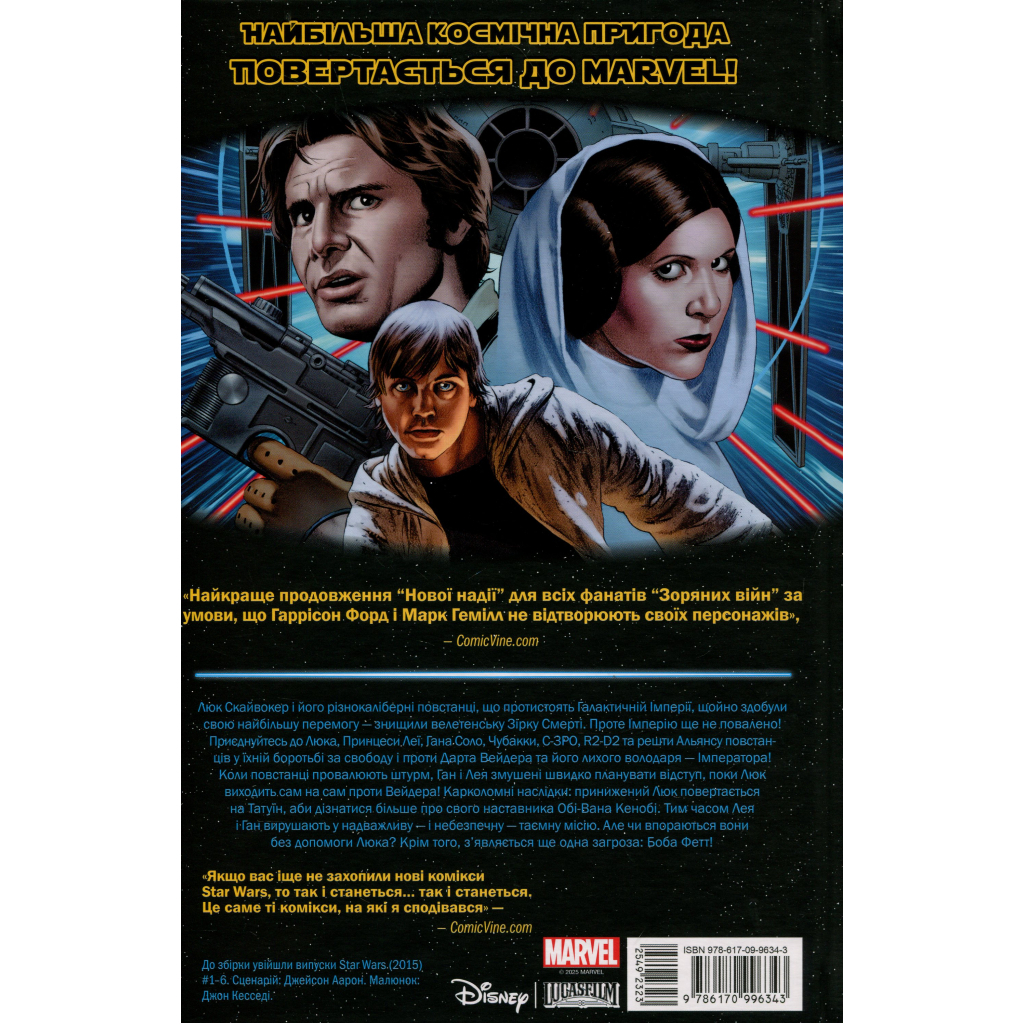 Комікс Зоряні Війни: Скайвокер завдає удару – Джейсон Аарон від Varvar Publishing запрошує вас у захоплюючу подорож у всесвіт Marvel. Люк Скайвокер та його команда повстанців, включаючи Принцесу Лею, Гана Соло, Чубакку, C-3PO та R2-D2, стикаються з новими викликами після знищення Зірки Смерті. Проте, Імперія ще не повалена, і боротьба за свободу триває!