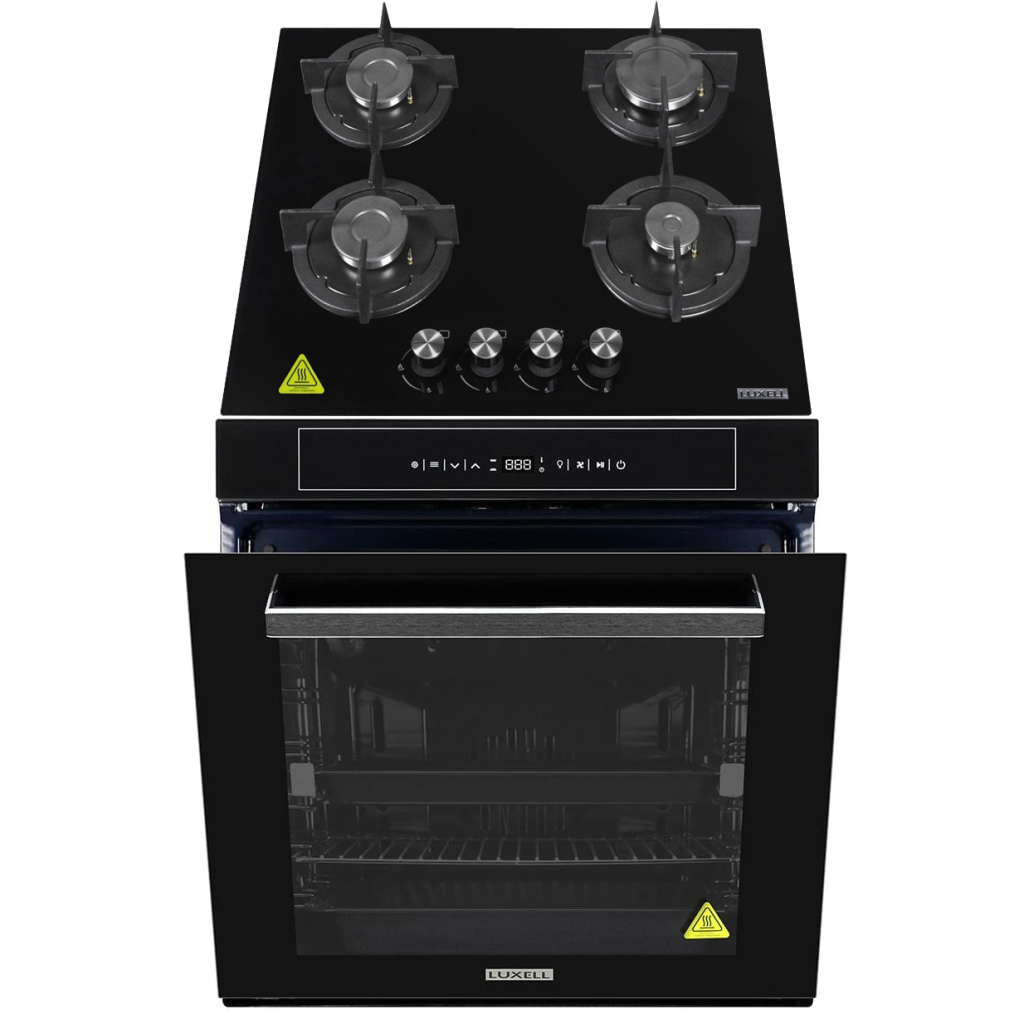 Комплект LUXELL 1 має безліч додаткових функцій, таких як газ-контроль, електропідпал, розморожування, а також електронний годинник. Система нагріву включає верхній та нижній нагрів, а також конвекцію для рівномірного приготування. Автоматичне відключення та звуковий сигнал забезпечують безпеку під час використання. Сенсорний програматор IconLED робить управління простим та зрозумілим.
