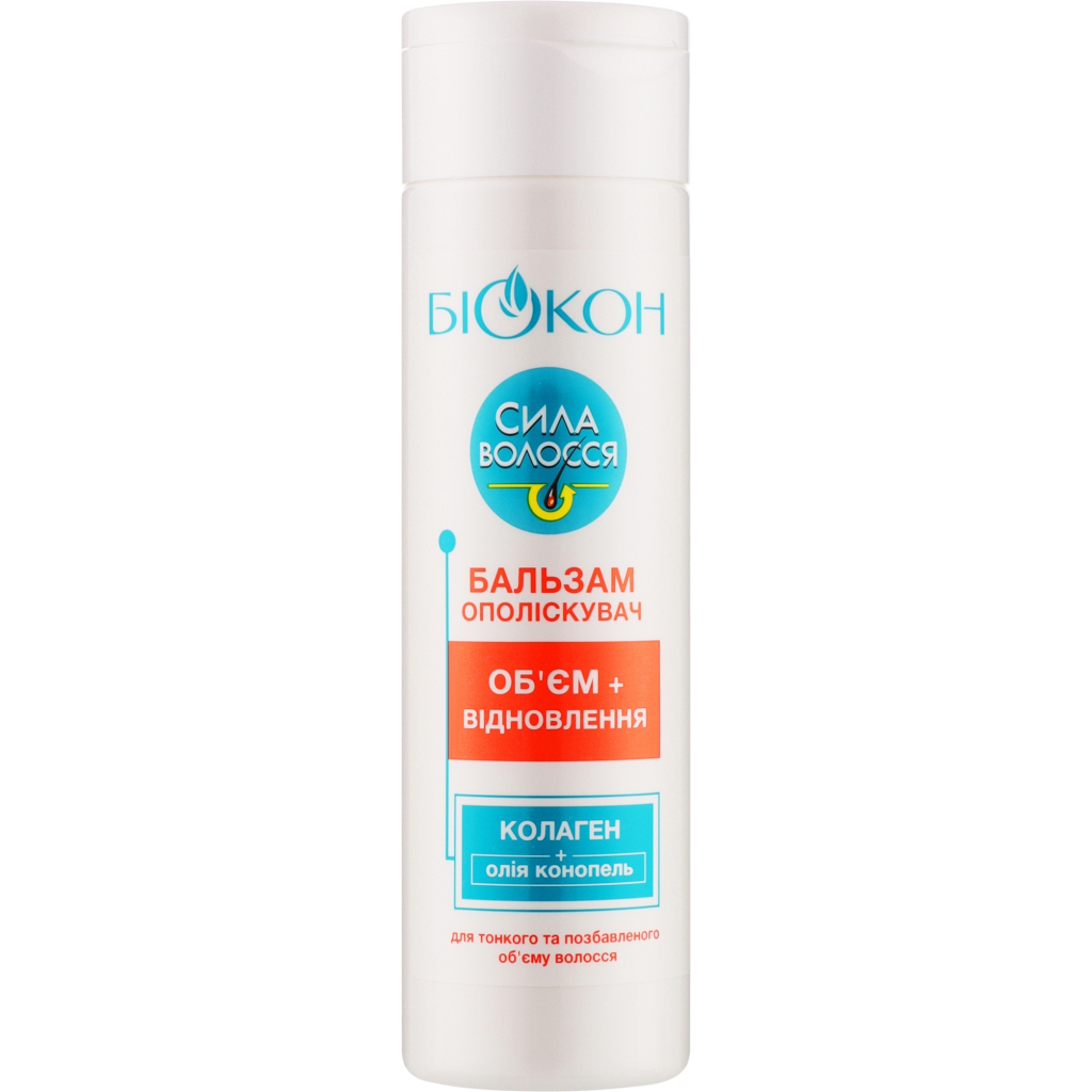 Кондиціонер для волосся Біокон Сила волосся Бальзам ополіскувач Обєм + відновлення 205 мл – це ваш надійний помічник у боротьбі з тьмяністю та слабкістю волосся. Цей продукт, розроблений українським брендом «Біокон», м’яко очищає волосся від забруднень і надлишків себума, надаючи їм здоровий вигляд і об’єм.