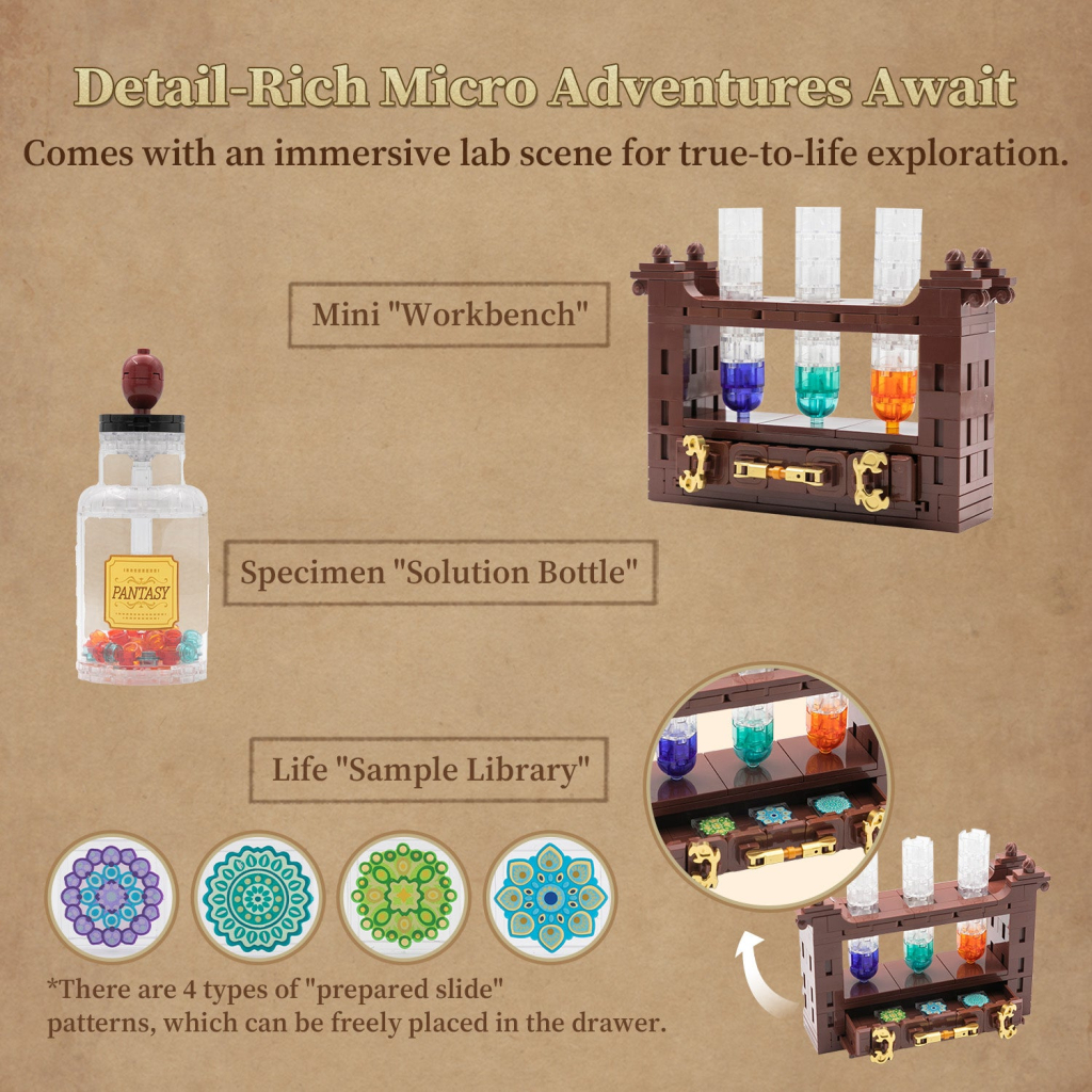 Конструктор Pantasy Retro Collection «Мікроскоп» (85034) — це вражаючий набір, який чудово поєднує ретро-естетику з захопливим процесом складання. Цей блоковий конструктор пропонує вам зануритися у світ наукових досліджень, адже ви самостійно зберете модель мікроскопа у вінтажному стилі. Його характерна форма, декоративні елементи та гармонійна кольорова гама відтворюють атмосферу традиційної наукової лабораторії.
