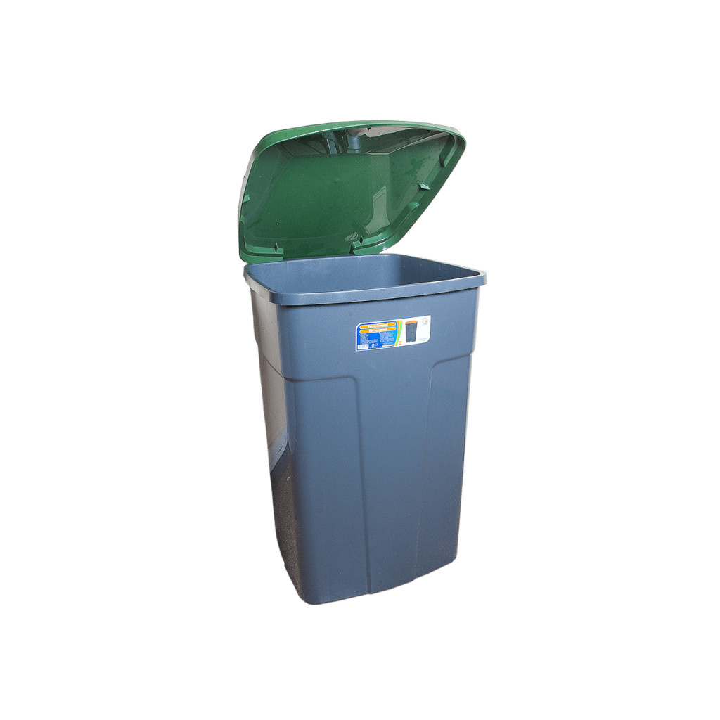 Контейнер для сміття Алеана з кришкою темно-сірий із зеленим 90 л – ідеальне рішення для організації сміття у вашому домі або офісі. Завдяки об'єму 90 літрів, цей контейнер дозволяє зручно утилізувати відходи, зберігаючи при цьому чистоту та порядок.