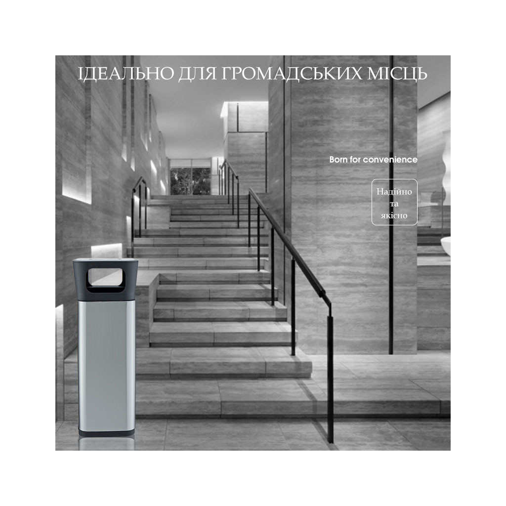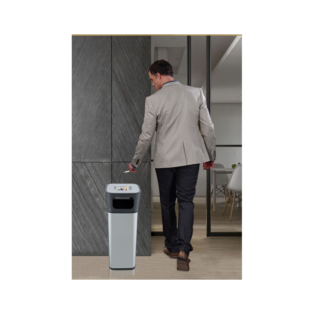 Контейнер для сміття JAH квадратный з попільничкою Срібний металік 25 л (6331)