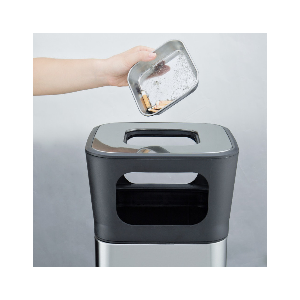 Контейнер для сміття JAH квадратний з попільничкою Срібний металік об’ємом 25 л – це ідеальне поєднання стилю та функціональності. Урна виготовлена з високоякісної нержавіючої сталі та поліпропілену, що забезпечує її довговічність та стійкість до корозії. Попільничка та верхня частина урни легко виймаються, що робить очищення простим і зручним. Спеціальне покриття запобігає появі забруднень і відбитків пальців, а антиковзка основа забезпечує стабільність. Розміри контейнера складають 28 x 28 x 62,5 см, що робить його ідеальним для використання в будь-якому приміщенні.