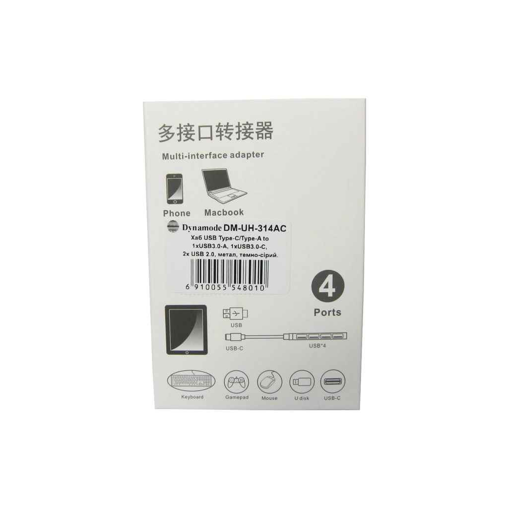 Dynamode Концентратор USB Type-C + USB-A – це універсальний пристрій, який дозволяє підключати до вашого комп'ютера або ноутбука до 4 USB-пристроїв одночасно. Завдяки своїй компактній конструкції та стильному темно-сірому дизайну, цей концентратор ідеально підходить для використання вдома або в офісі.