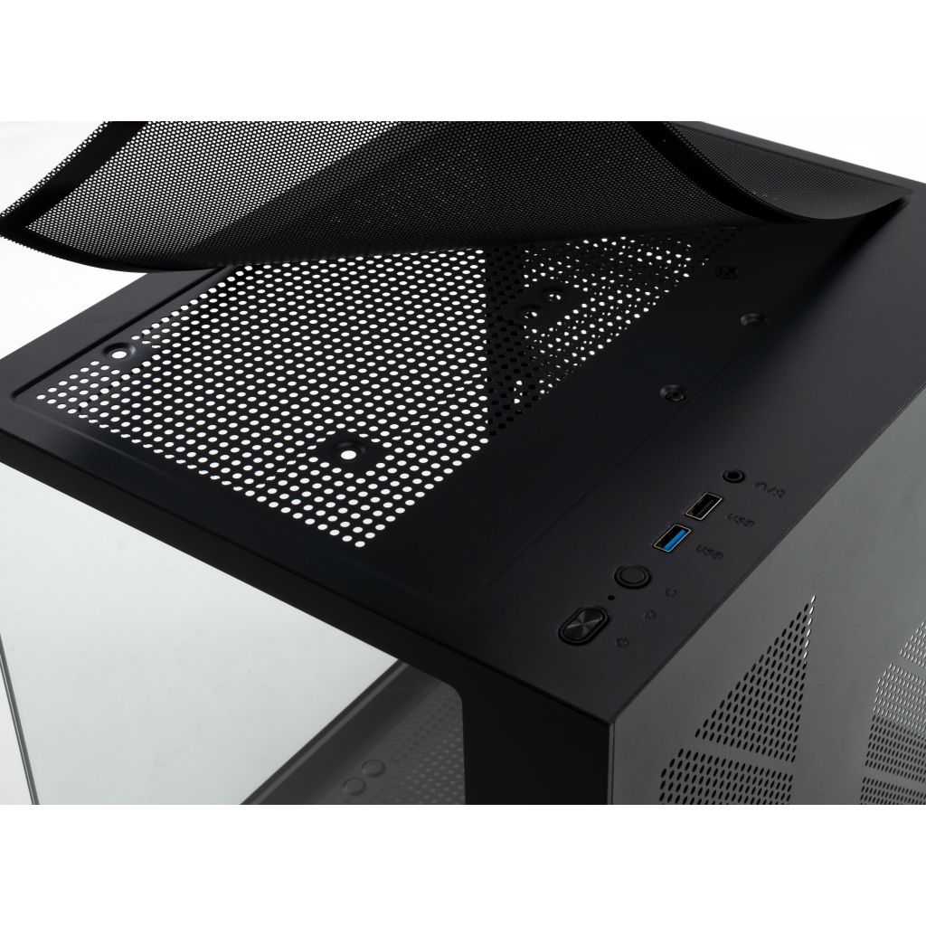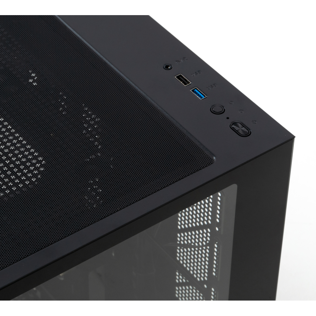 - Матеріали: Передня та ліва бокові панелі виготовлені із загартованого скла, що надає корпусу елегантного вигляду та можливість демонструвати внутрішні компоненти.