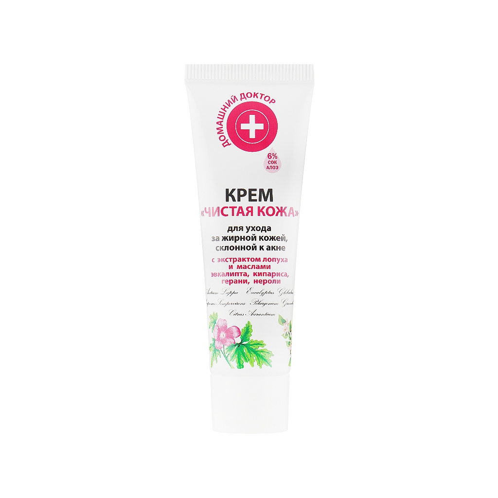 Крем для обличчя Домашній Доктор Чиста шкіра 30 мл – це ідеальний вибір для власниць жирної шкіри, схильної до вугрового висипання. Цей крем має антисептичні та антибактеріальні властивості, що робить його надзвичайно ефективним при подразненнях, запаленнях і почервоніннях. Активні компоненти крему звужують розширені пори, нормалізують функціонування сальних залоз та надають освітлювальний ефект.