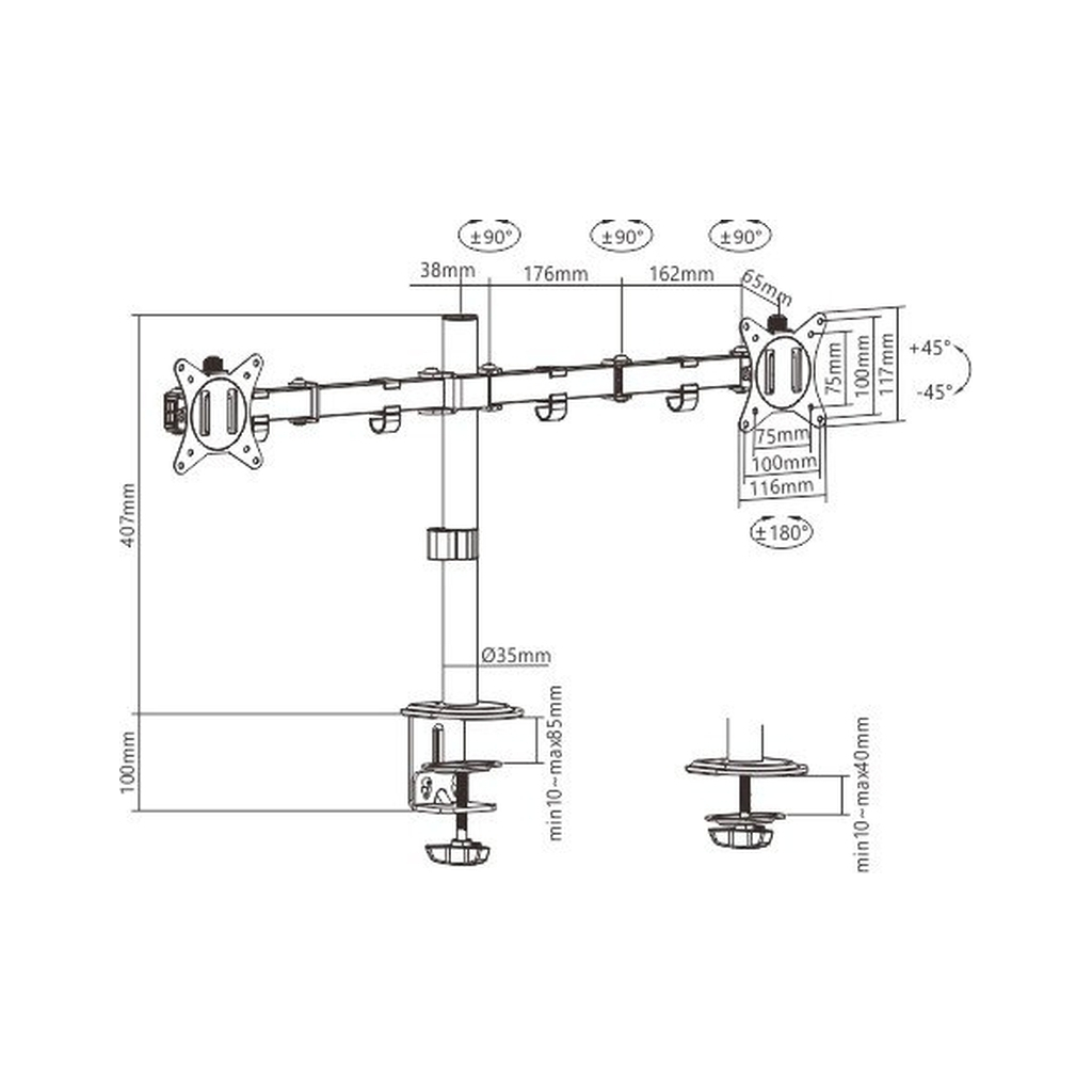 Кронштейн Gembird MA-D2-01 – це надійний поворотно-похилий кронштейн для моніторів, який дозволяє зручно налаштувати положення екрану відповідно до ваших потреб. Він підтримує діагоналі від 17 до 32 дюймів, що робить його універсальним рішенням для будь-якого робочого місця.