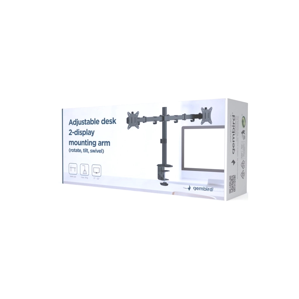 Кронштейн обладнаний системою прокладки кабелів, що забезпечує порядок на вашому робочому місці. Завдяки міцній сталевій конструкції, він надійно тримає ваш монітор, а можливість встановлення на стіл робить його ідеальним вибором для домашнього або офісного використання. Обирайте Gembird MA-D2-01 для оптимізації вашого простору та підвищення комфорту під час роботи.