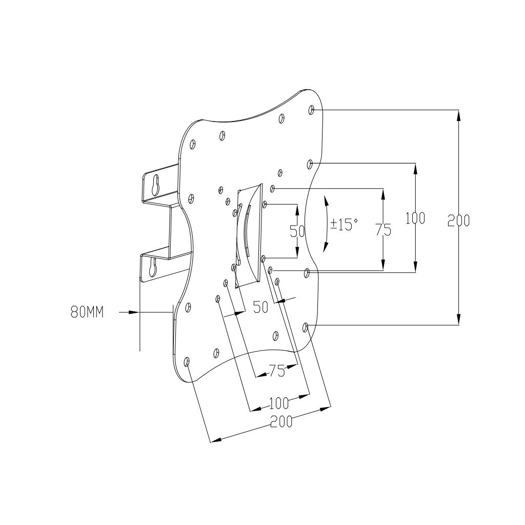 - VESA: 50 x 50, 75 x 75, 100 x 75, 100 x 100, 150 x 100, 200 x 100, 200 x 200