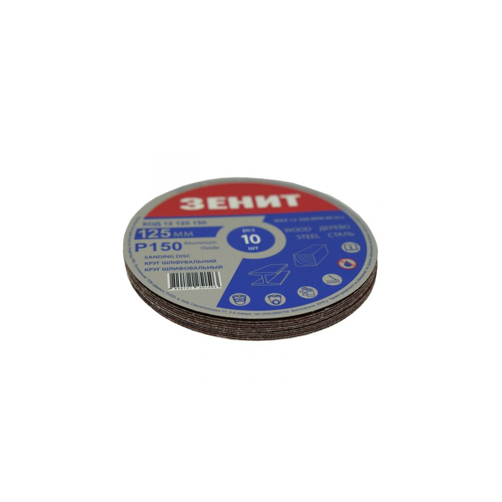 Круг зачистний Зеніт 125 мм з. 150 під "липучку" – ідеальний вибір для ефективної обробки металу та деревини. У комплекті ви отримуєте 10 високоякісних кругів, які забезпечують швидке та якісне шліфування, завдяки зернистості P150.