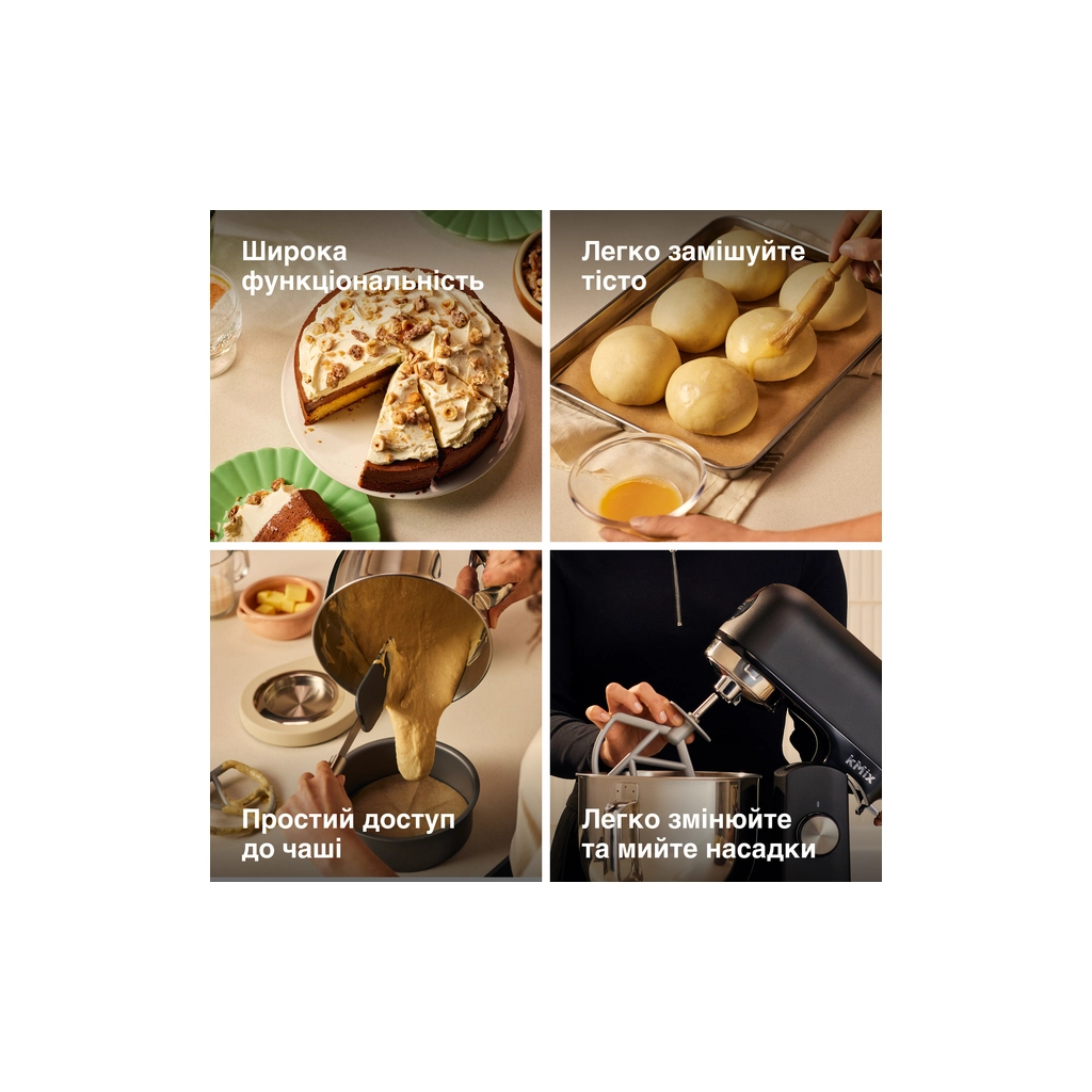 - Насадки: крюк для тіста, K-насадка для збивання, вінчик