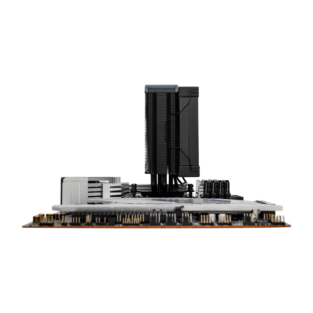 Основні технічні характеристики включають: сокети 1151, 1150, 1155, 1200, 1700, 1851, матеріал радіатора – алюміній, діаметр вентилятора – 120 мм, максимальна частота обертів – 1850 об/хв, рівень шуму – всього 28 dB. Кулер оснащений гідродинамічними підшипниками (FDB Bearing) та має RGB підсвічування, що додає естетичності вашій системі.
