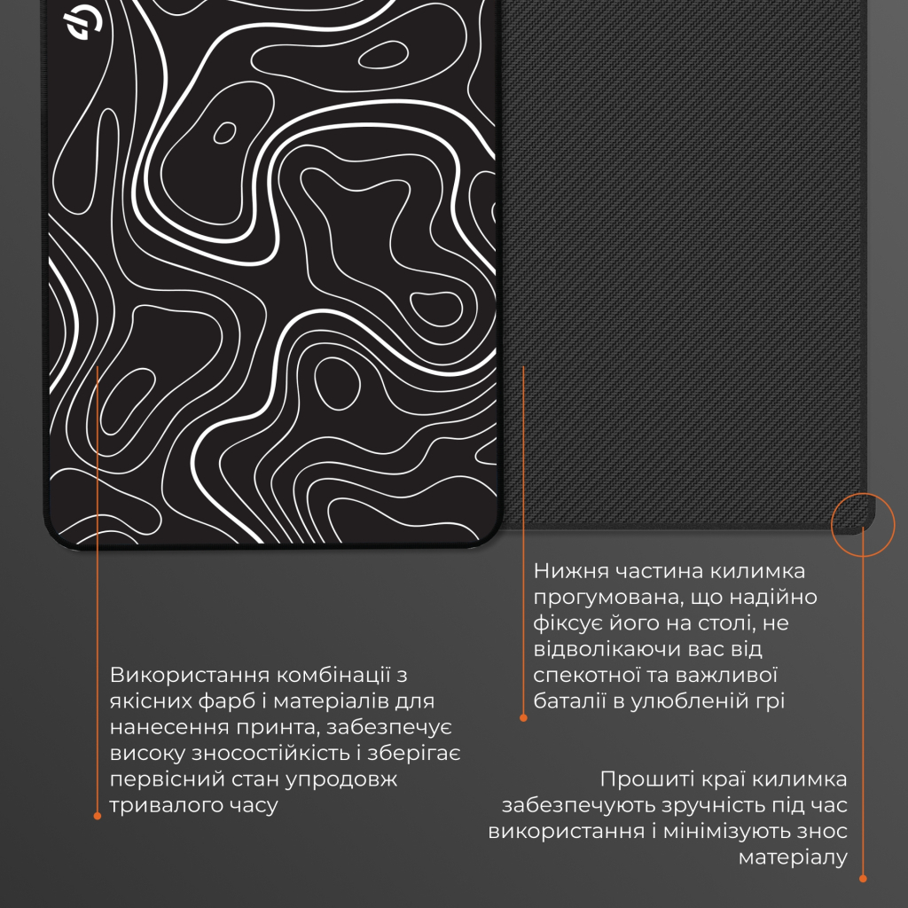 Прорезинена основа забезпечує надійну фіксацію на будь-якій поверхні. Килимок не ковзає, не зсувається навіть під час найбільш напружених моментів гри, даруючи користувачу повний контроль над кожним рухом. Це особливо важливо для кіберспортсменів і тих, хто грає на високих рівнях складності, де важлива кожна мілісекунда.