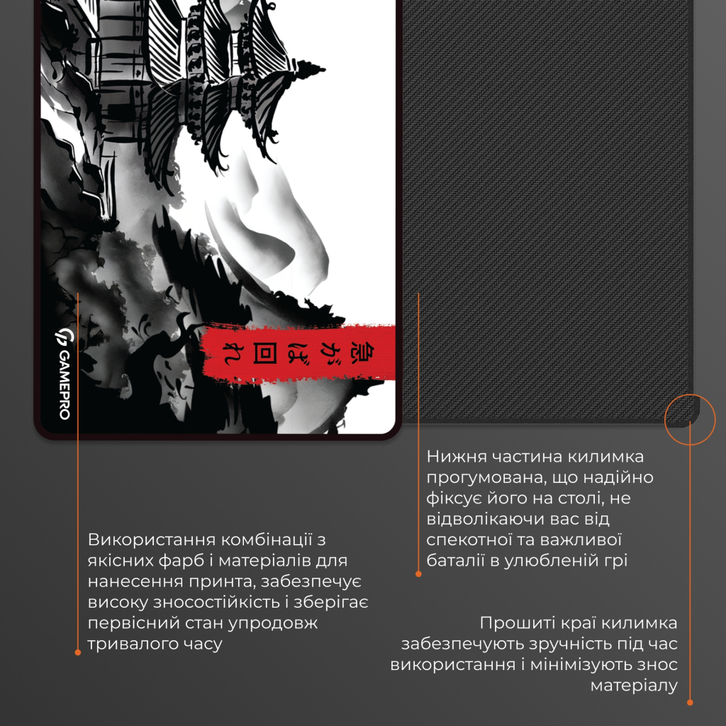 З ігровим килимком від GamePro кожен рух миші буде точним, а кожна дія — максимально ефективною. Це не просто аксесуар, а інструмент, що дозволяє повністю розкрити потенціал улюбленої гри.