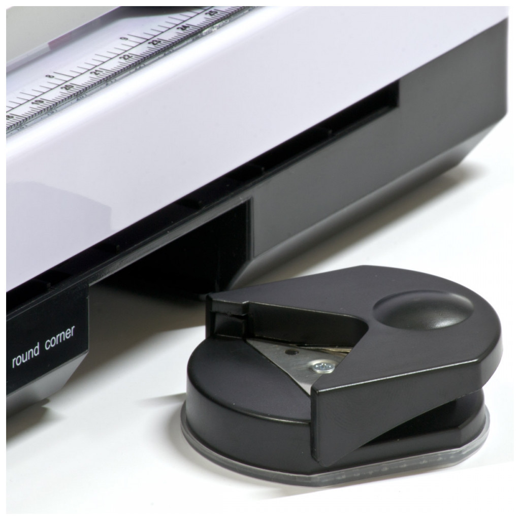 У даній моделі поєднані три функції: ламінатор + роликовий різак з трьома типами різання (прямий різ, фігурний рез «хвиля», мікроперфорація) + Заокруглювач кутів.