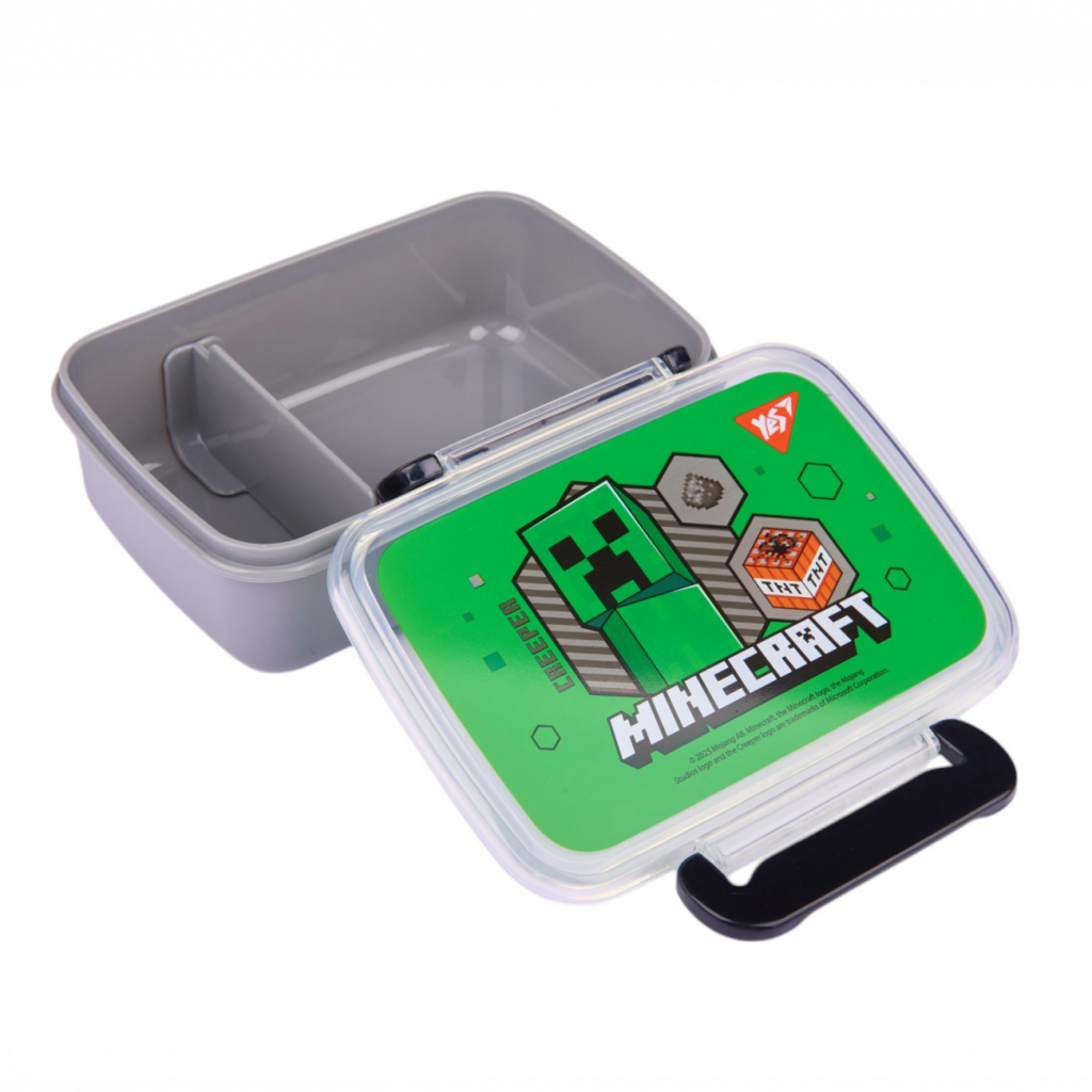 Ланч-бокс від ТМ Yes – це ідеальний спосіб забезпечити вашій дитині здоровий і смачний перекус. Оберіть надійність та якість для своєї дитини в повсякденних речах! Контейнер відтворює улюблені елементи світу Minecraft, а отже кожен перекус стане для вашої дитини цікавою пригодою. Завдяки своїй прямокутній формі, ланч-бокс ідеально поміщається в сумки та рюкзаки не займаючи багато місця. 2 клапани закриття та з’ємний розділювач забезпечать легкість транспортування та допоможуть зберегти ваші страви в ідеальному стані. Ланч-бокс виготовлено з безпечного харчового пластику, який не містить токсичних речовин і не впливає на якість продуктів.