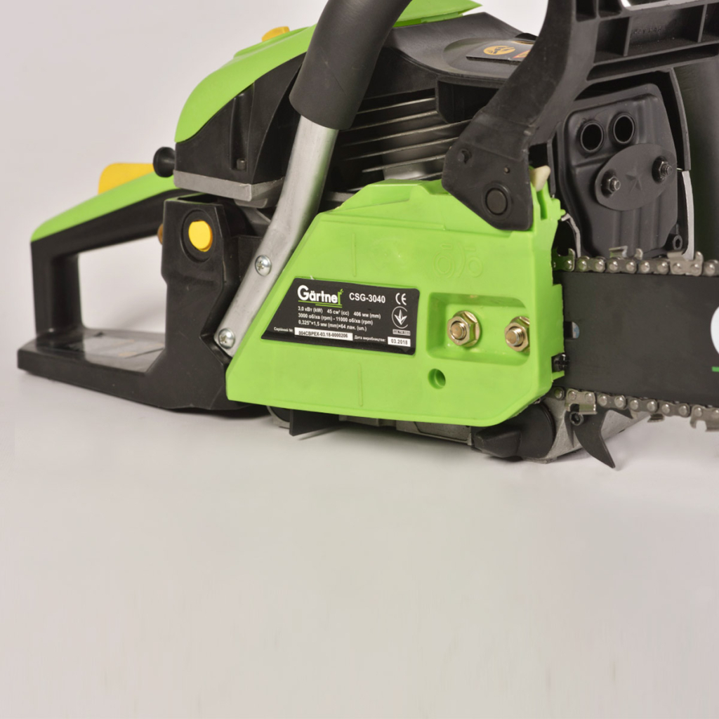 Ланцюгова пила Gartner CSG-3040 – це надійний побутовий інструмент для виконання різноманітних завдань на дачі чи в саду. Завдяки потужному двигуну з максимальною потужністю 3000 Вт та об'ємом 45 см³, ця бензопила забезпечує високу продуктивність та ефективність при роботі з деревиною.