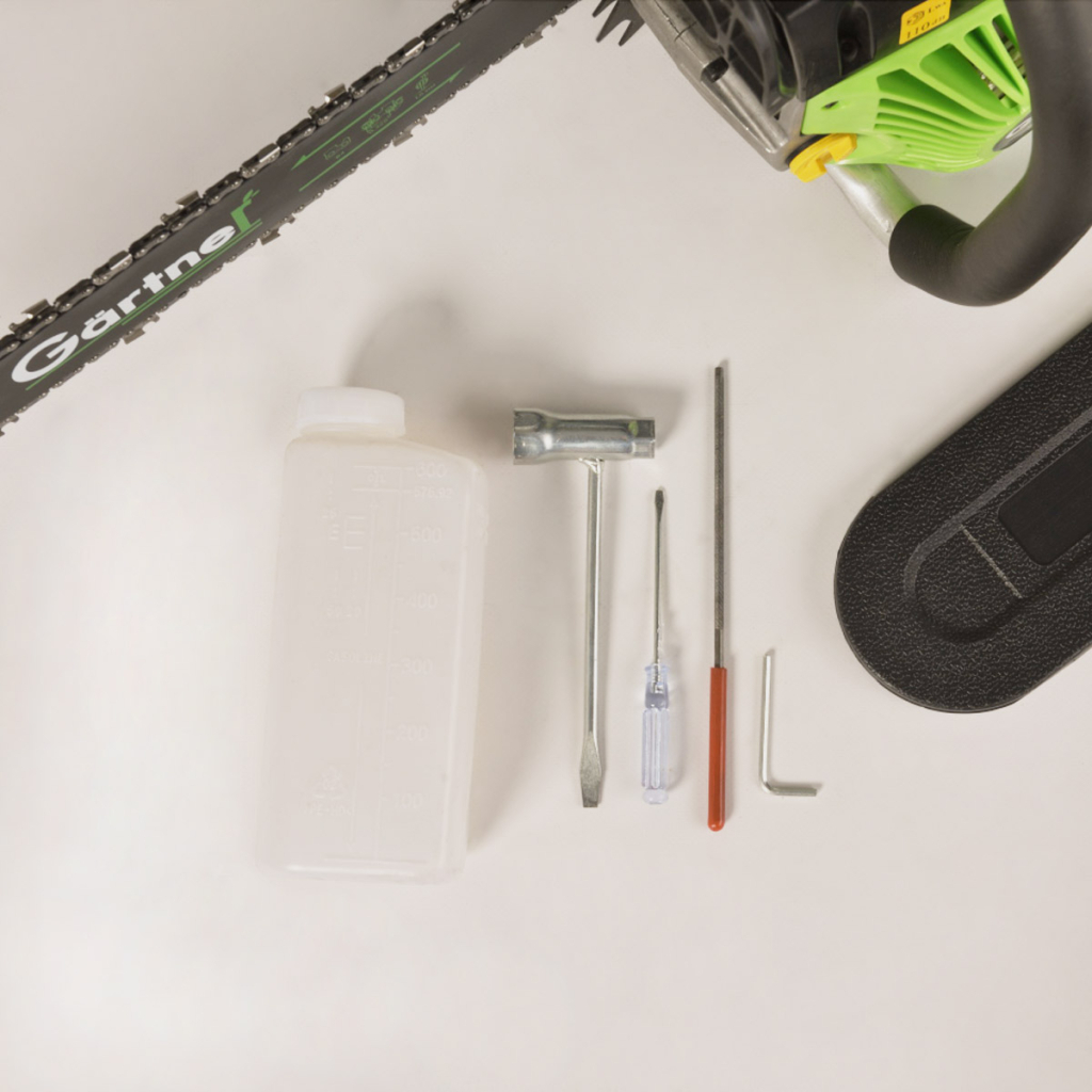 Ця бензопила має ряд функцій, які роблять її використання зручним та безпечним. Серед них: автоматичне змащення ланцюга, швидка заміна ланцюга, гальмо ланцюга, блокування кнопки увімкнення, упор для утримання пили в стовбурі та антивібраційна система. Рівень звукового тиску становить 110 дБ, а швидкість обертання ланцюга досягає 15 м/сек, що забезпечує високу продуктивність. Ланцюгова пила Gartner CSG-3040 – ваш надійний помічник у будь-яких побутових роботах.