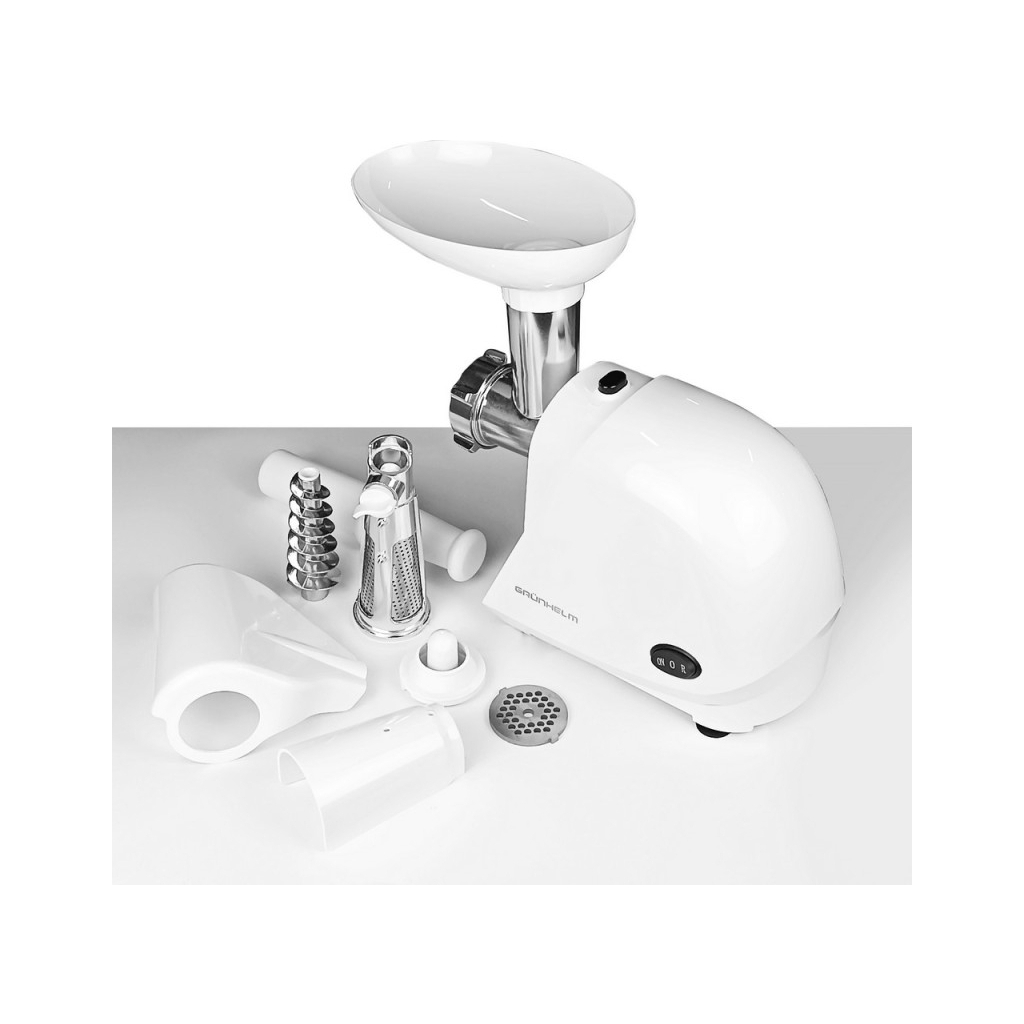 М’ясорубка Grunhelm AMG143WJ є надійним і багатофункціональним пристроєм для приготування м’ясних та інших страв. З потужністю 1400 Вт дана м’ясорубка забезпечує досить високу продуктивність для швидкого та ефективного подрібнення м’яса.