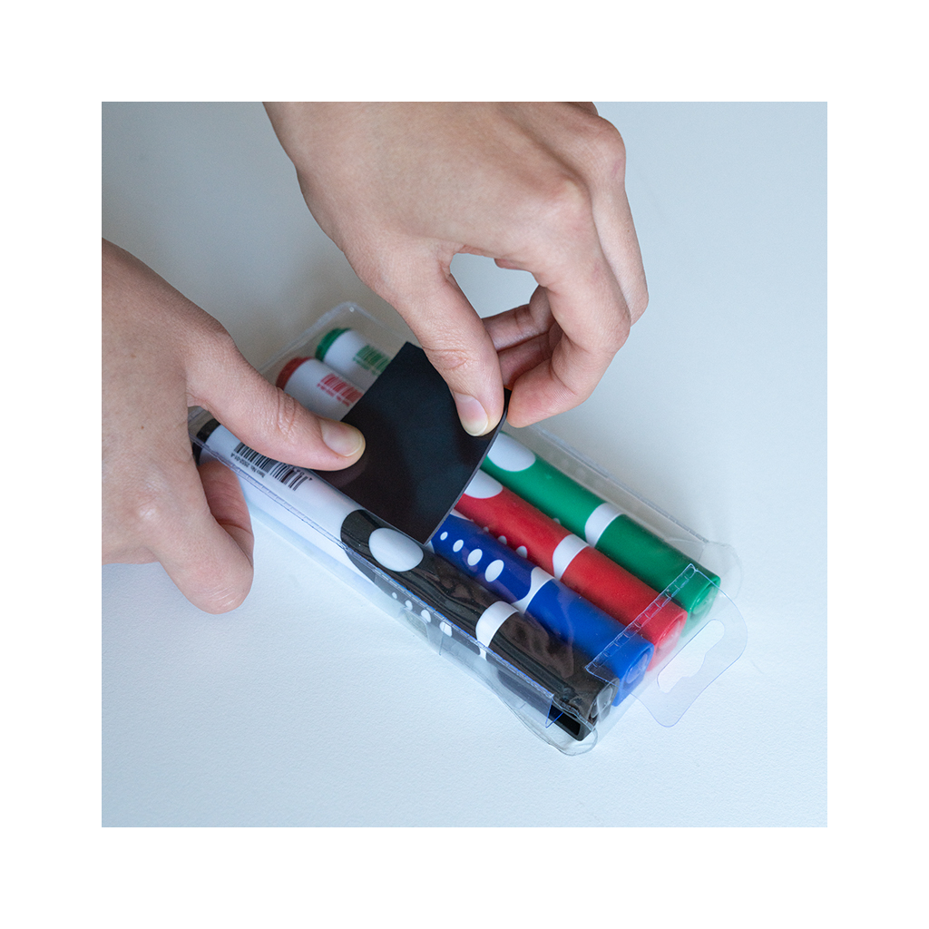 - Підходять для написів на сухостираних дошках та інших гладких поверхнях (пластик, скло тощо). Напис легко витирається сухою тканиною або серветкою.