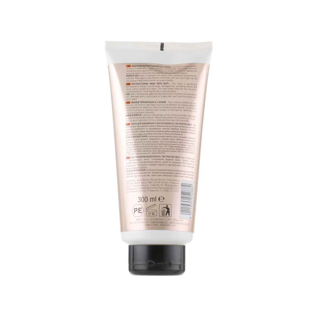 Brelil Numero відновлююча маска для волосся з екстрактом вівса об'ємом 300 мл – це професійний засіб, спеціально розроблений для відновлення, живлення та надання об'єму сухому і пошкодженому волосся. Завдяки унікальній формулі, маска глибоко проникає в структуру волосся, відновлюючи його природну красу та здоров'я.